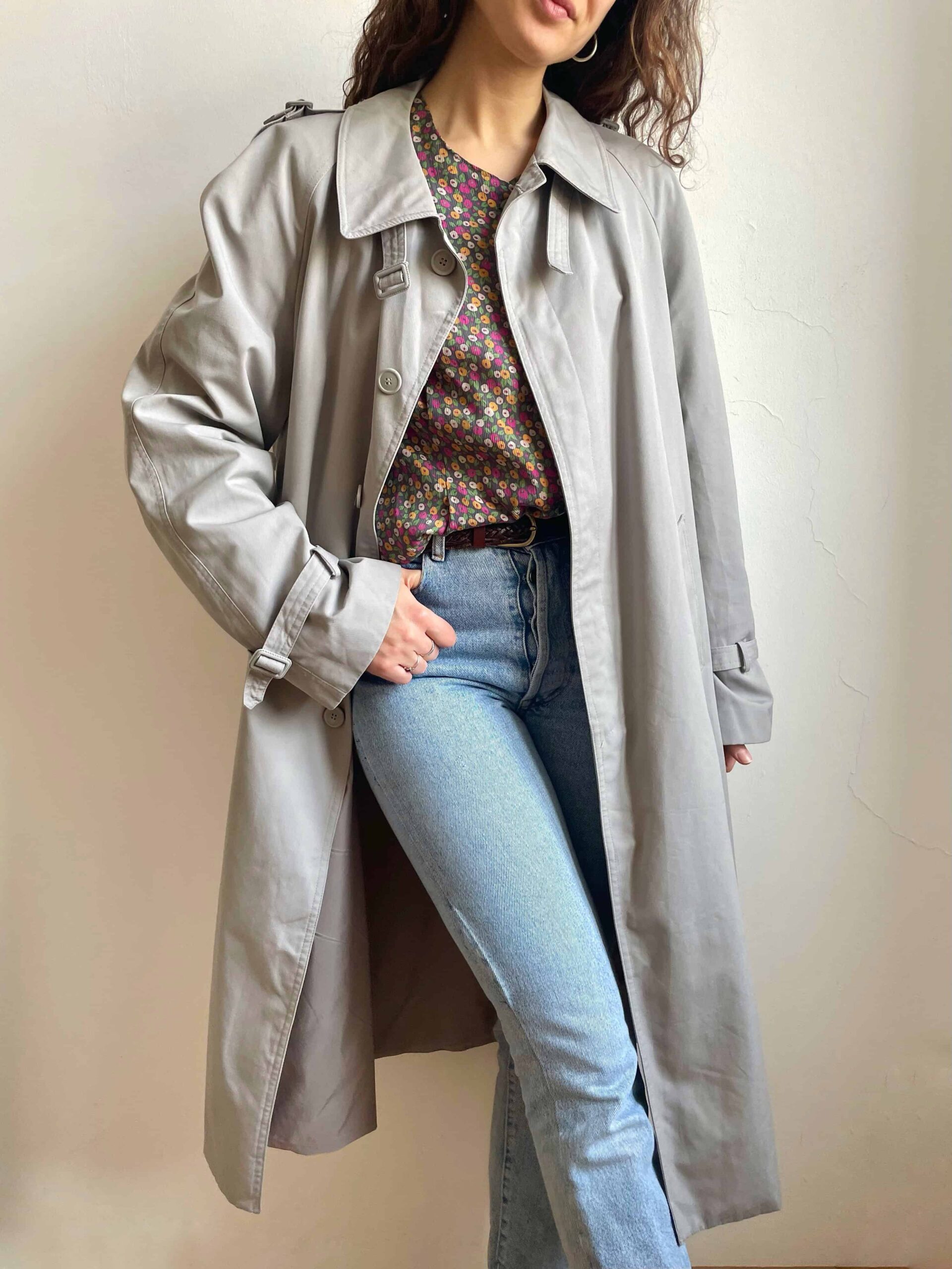 Trench vintage in elegante grigio perla