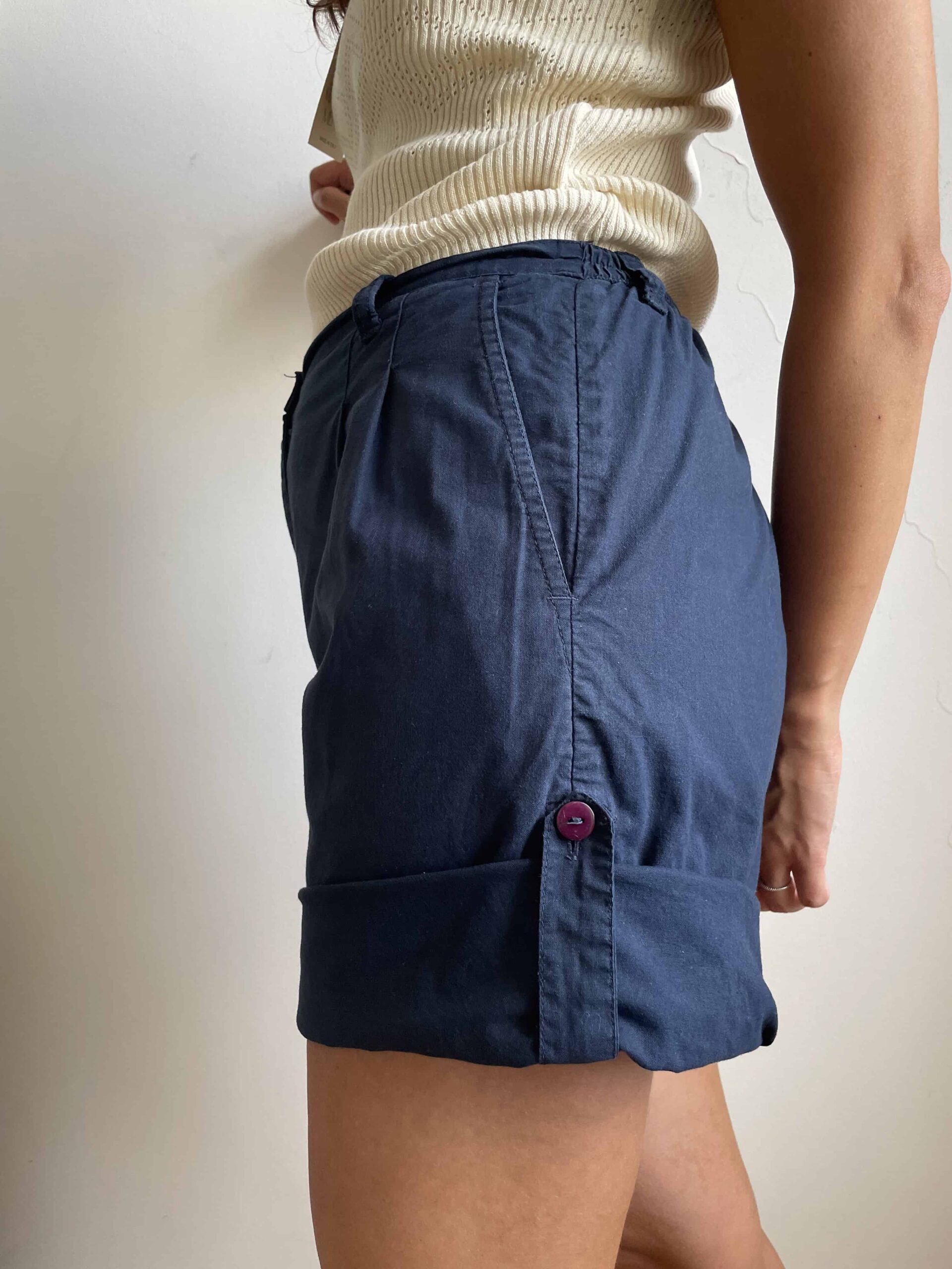 Bermuda vintage in cotone sottile blu con lunghezza regolabile