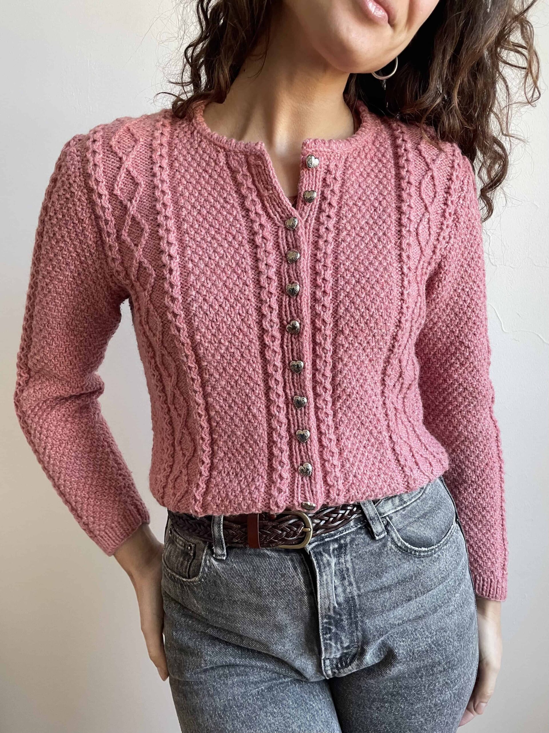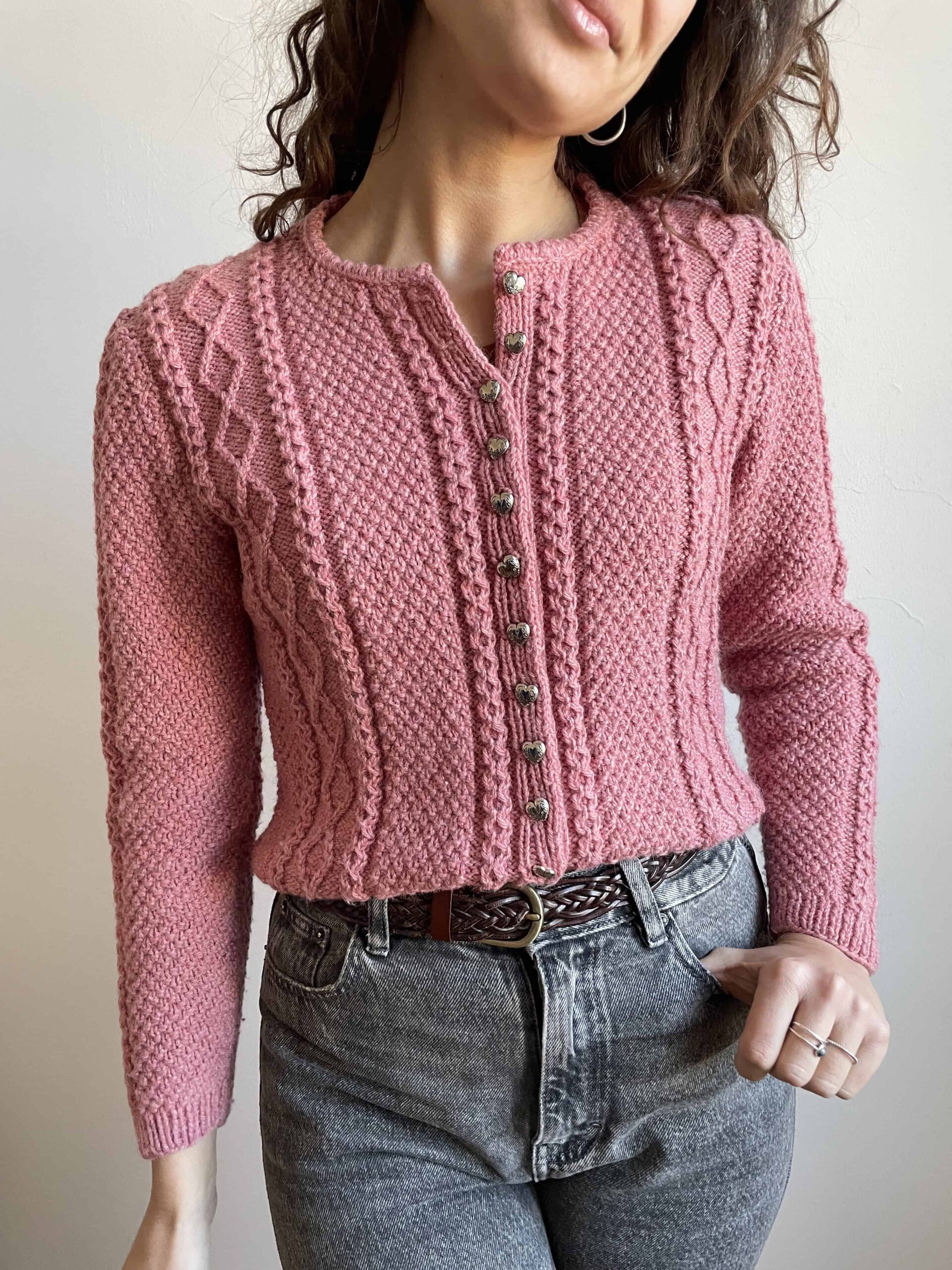 Cardigan vintage tirolese fatto a mano 100% lana rosa