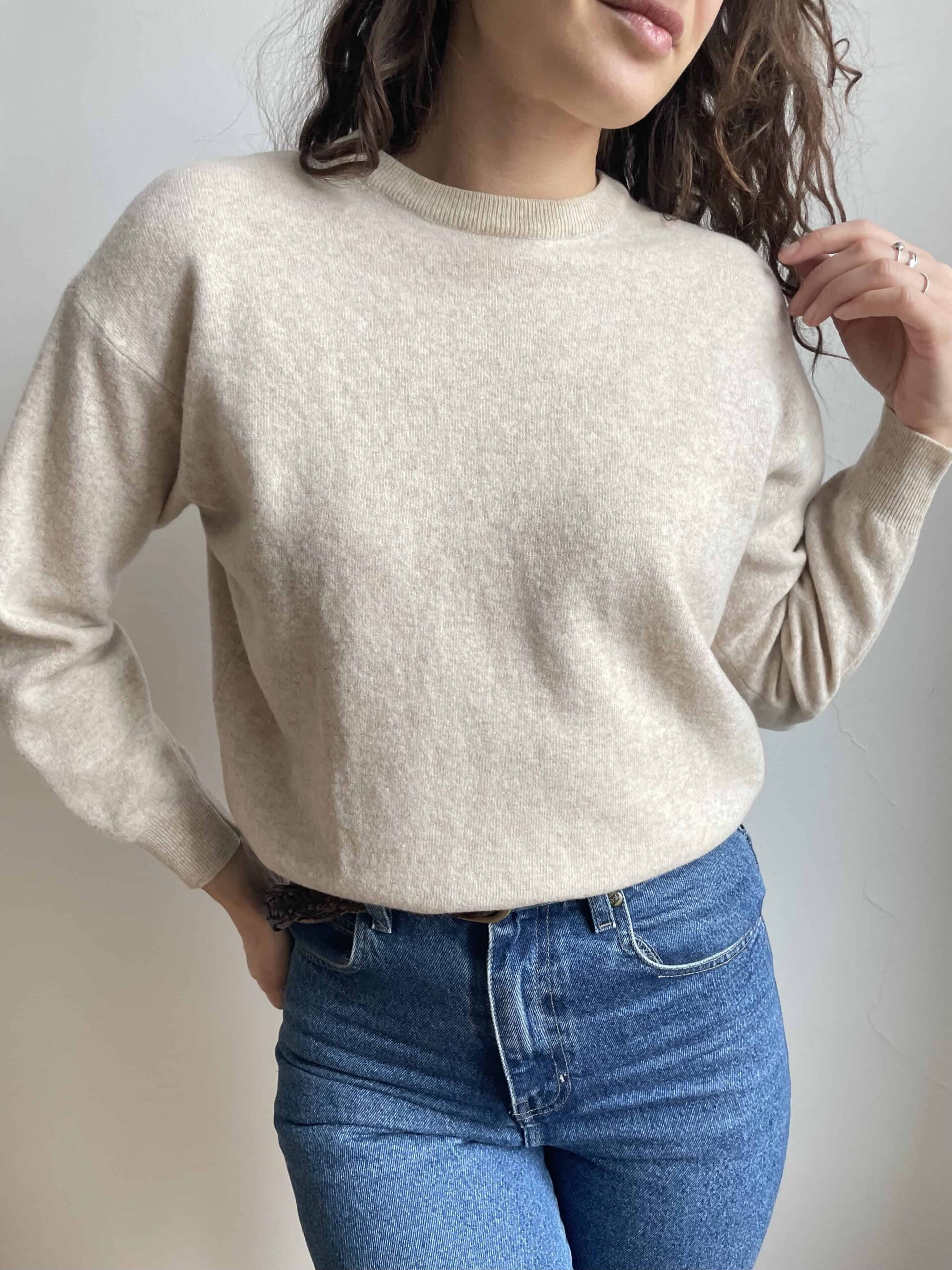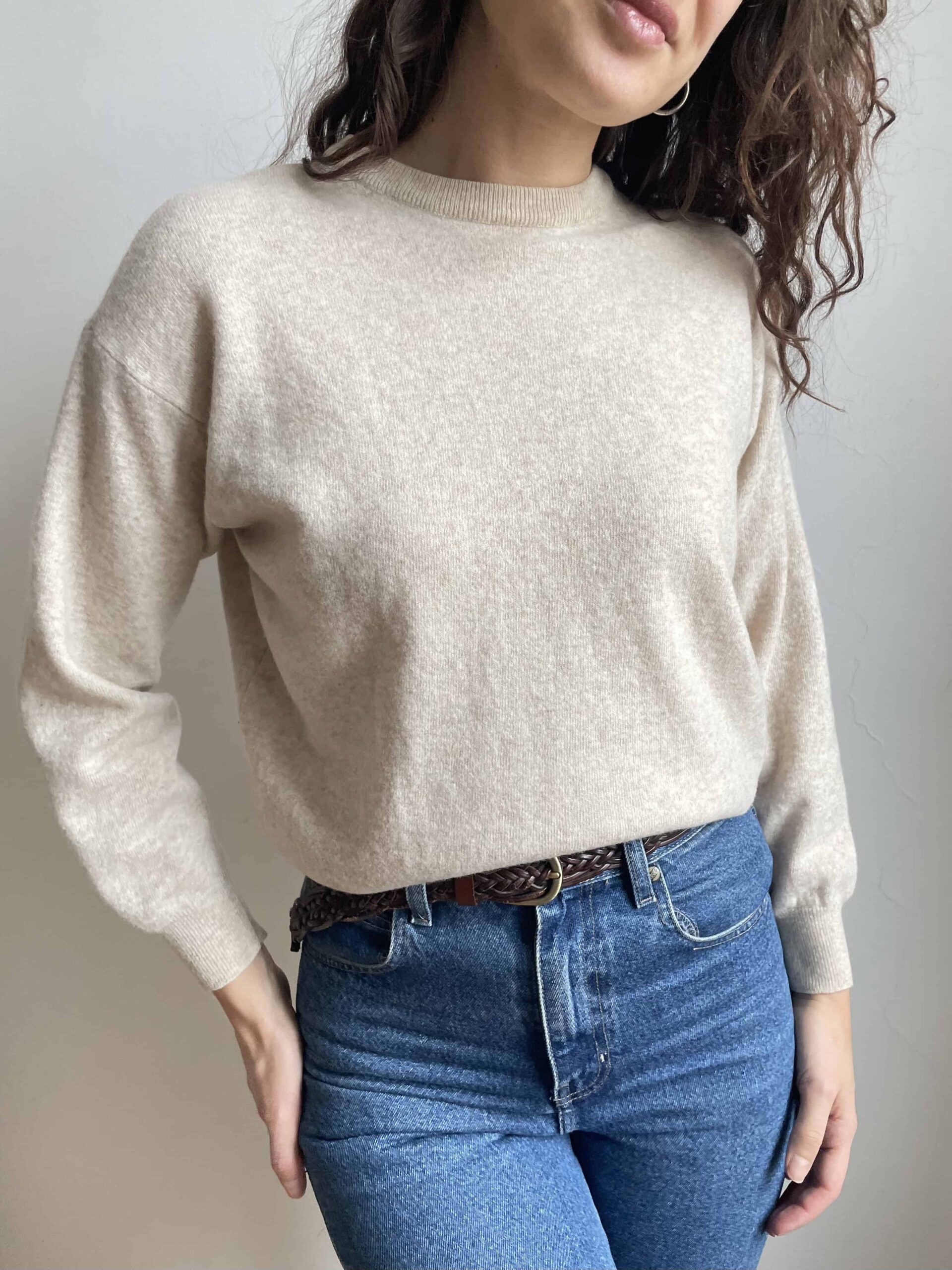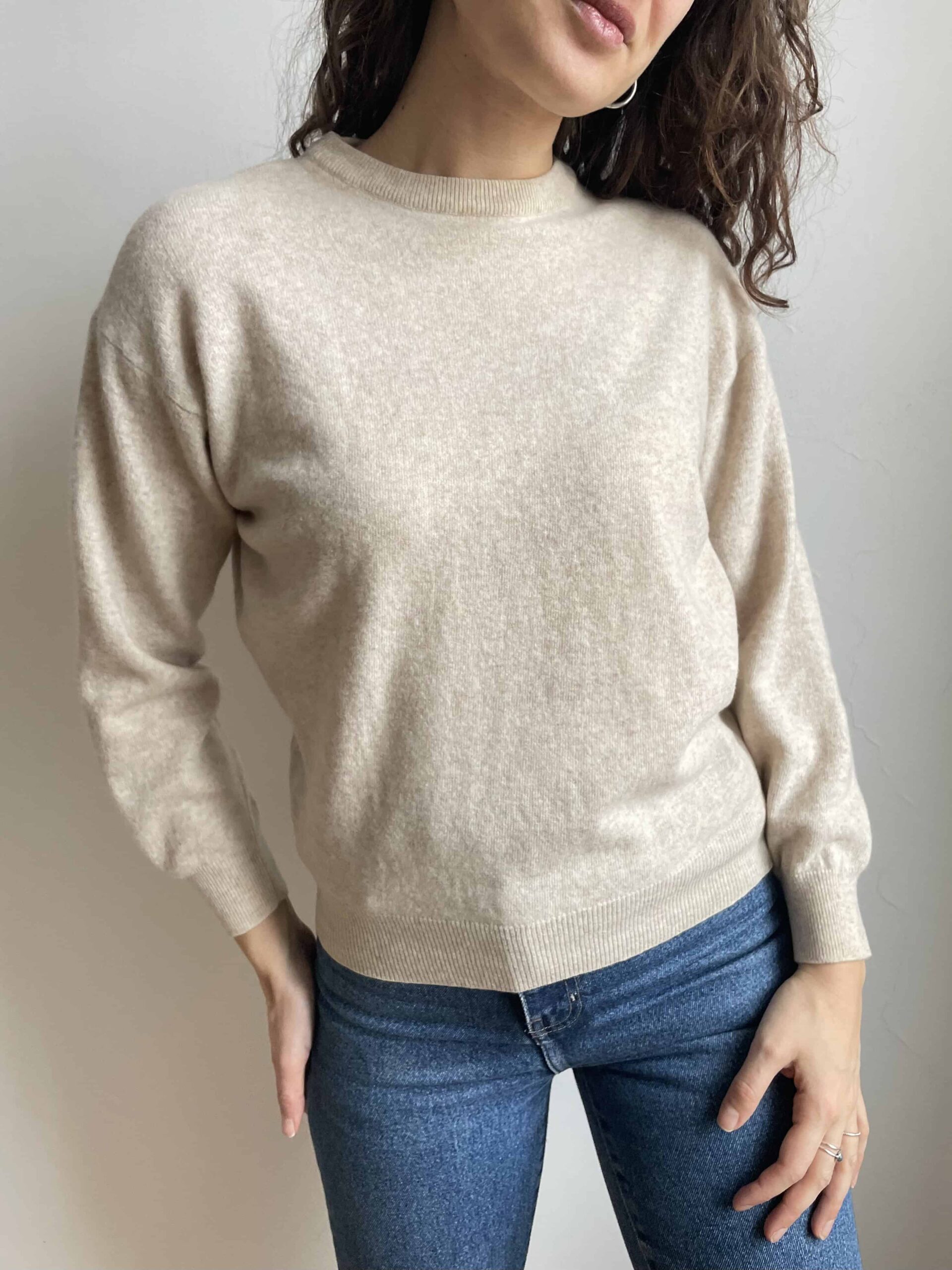 Maglioncino girocollo vintage 100% lana di agnello beige