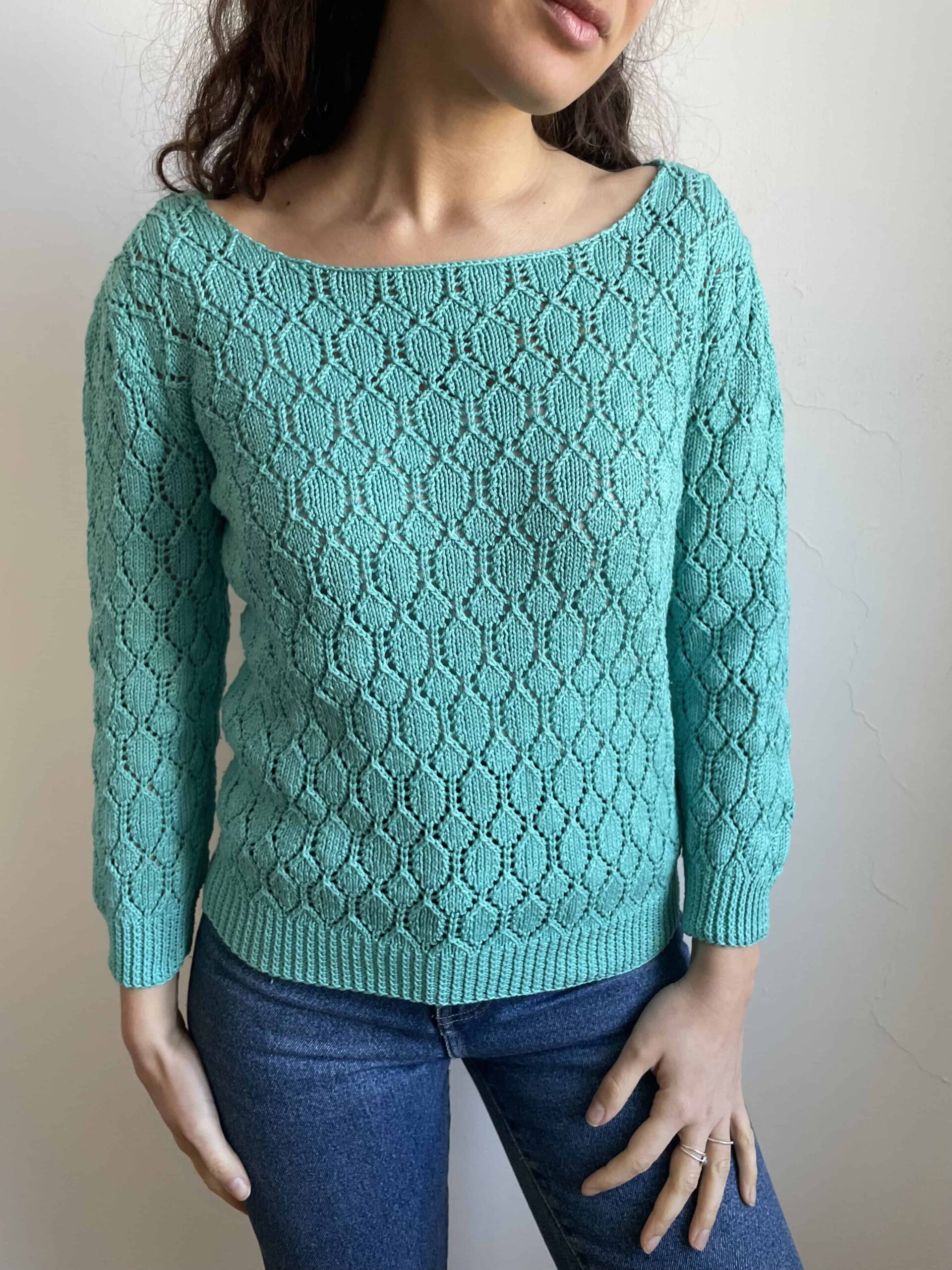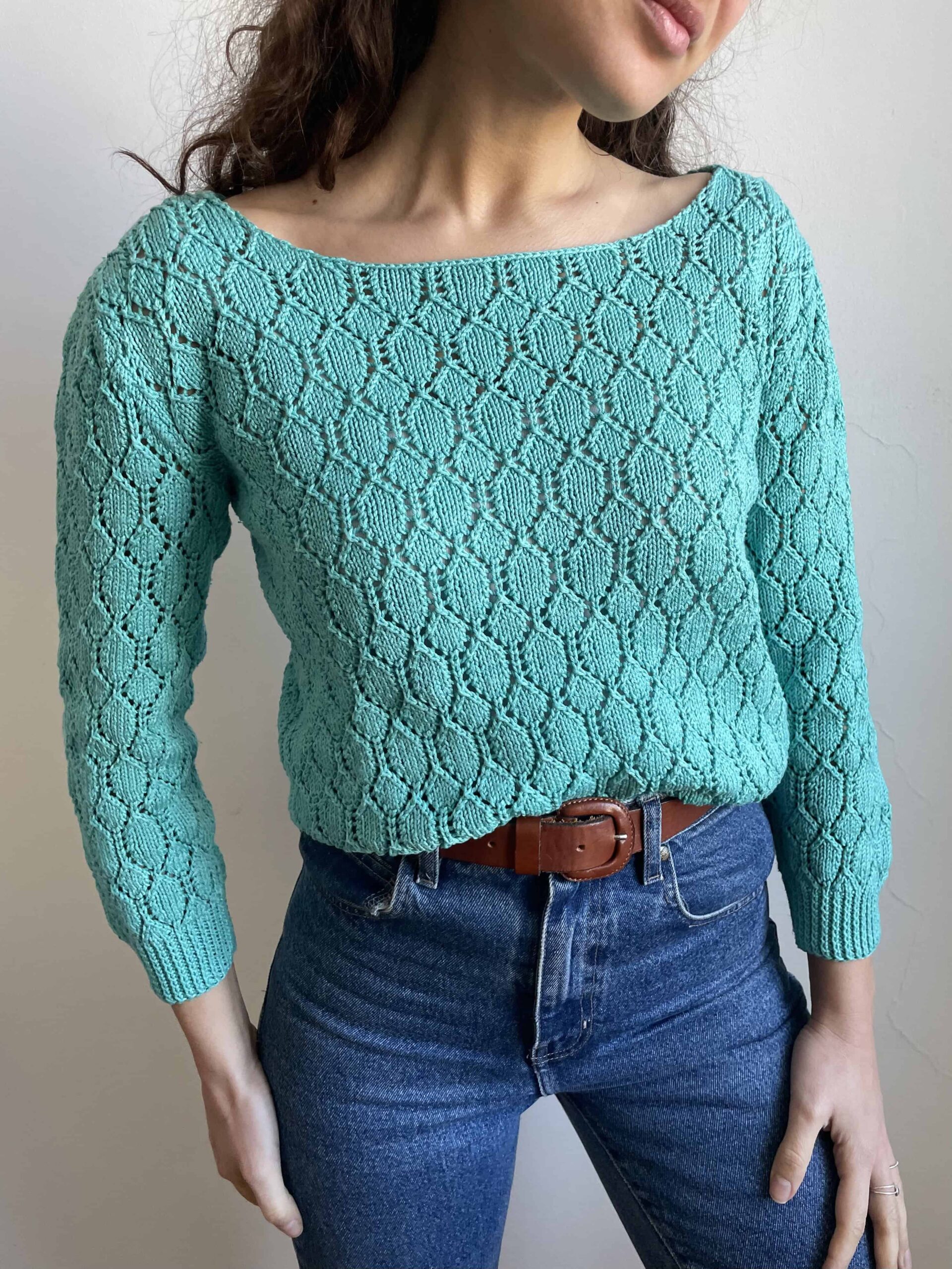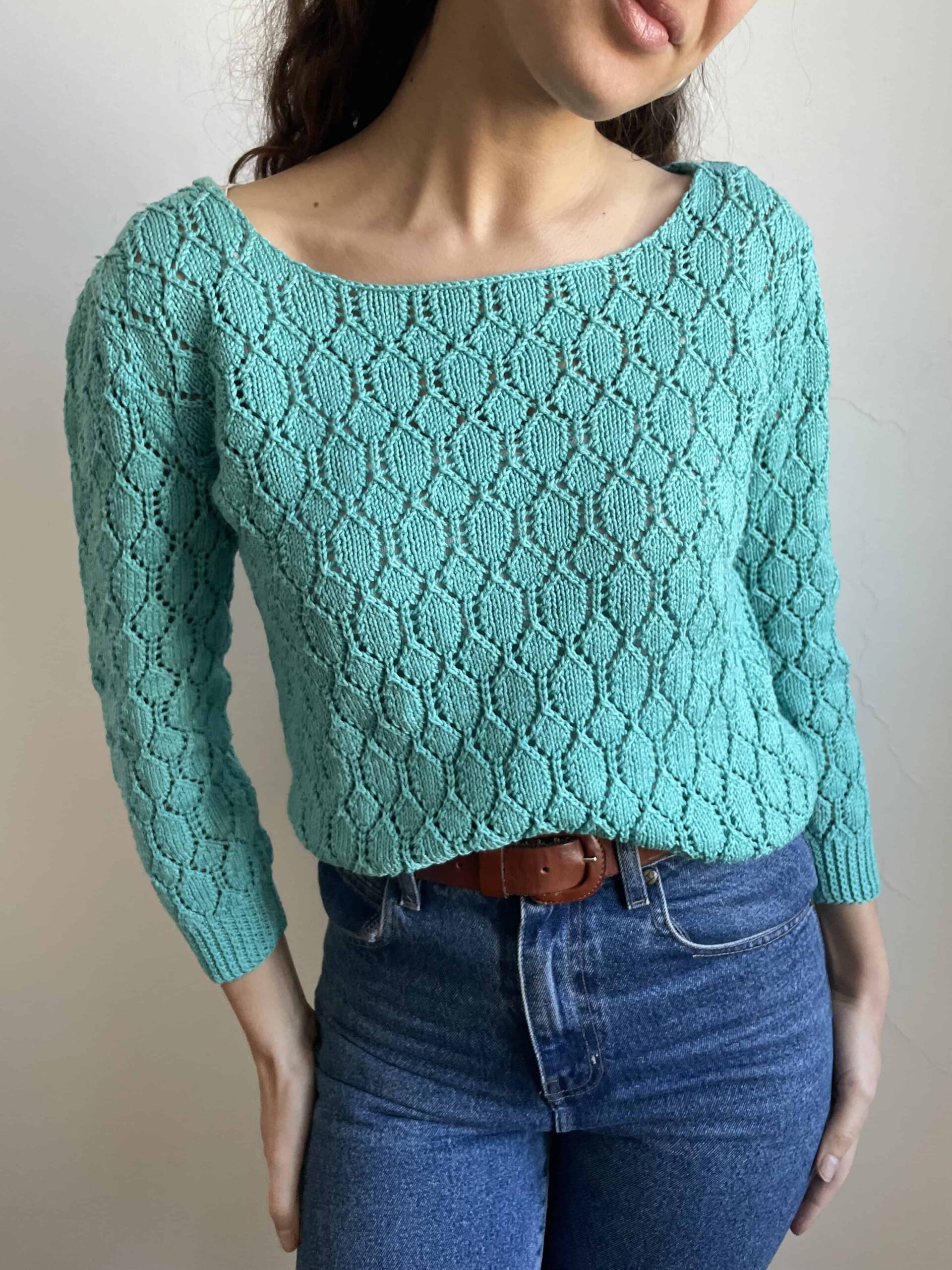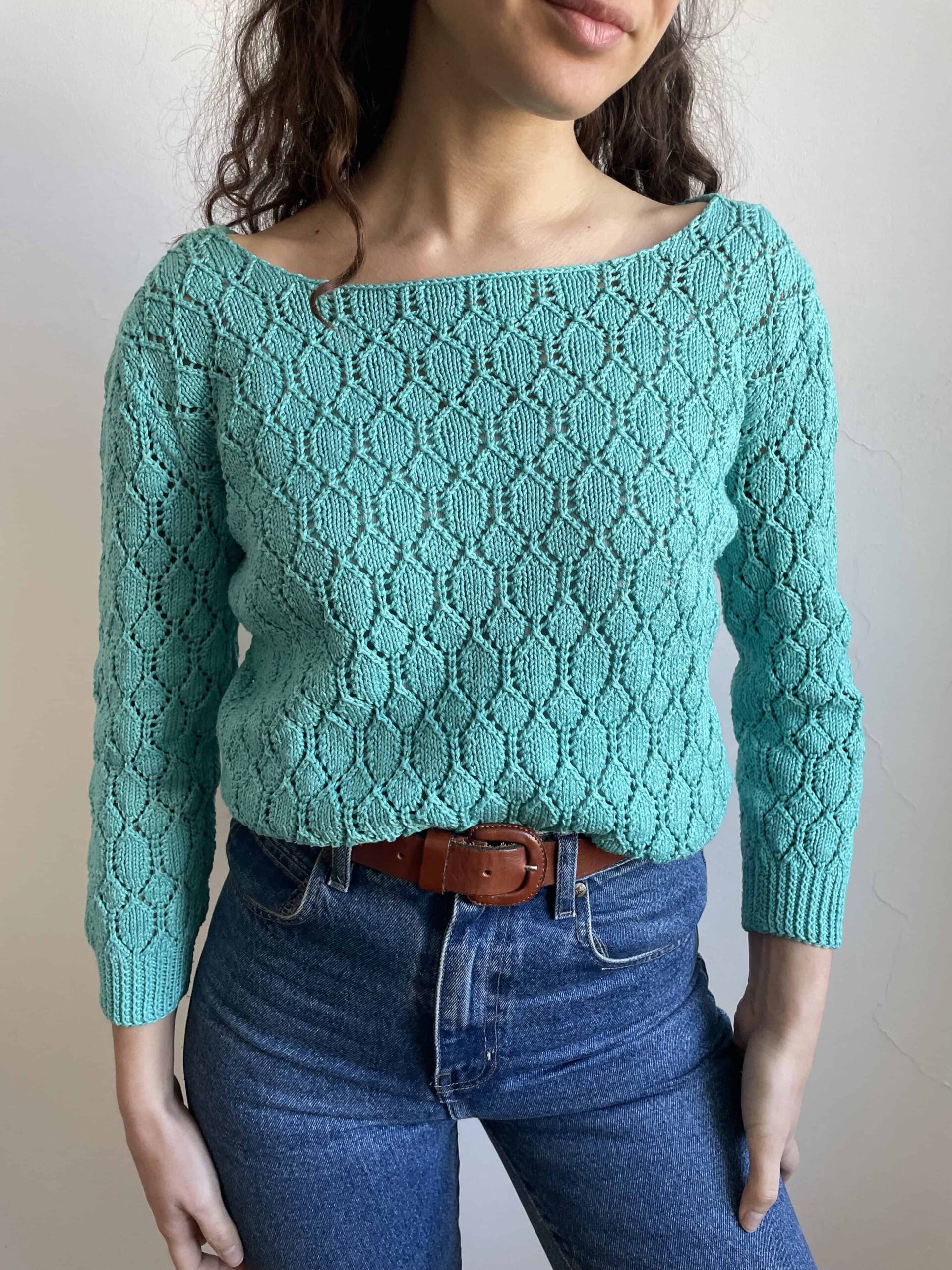 Maglioncino vintage in 100% puro cotone traforato/crochet. Bellissimo color azzurro/verde acqua con collo a barchetta. Manica non molto lunga, un po’ a tre quarti. Taglia indicativa 40. Fate riferimento alle misure confrontandole con quelle di una vostra maglia: