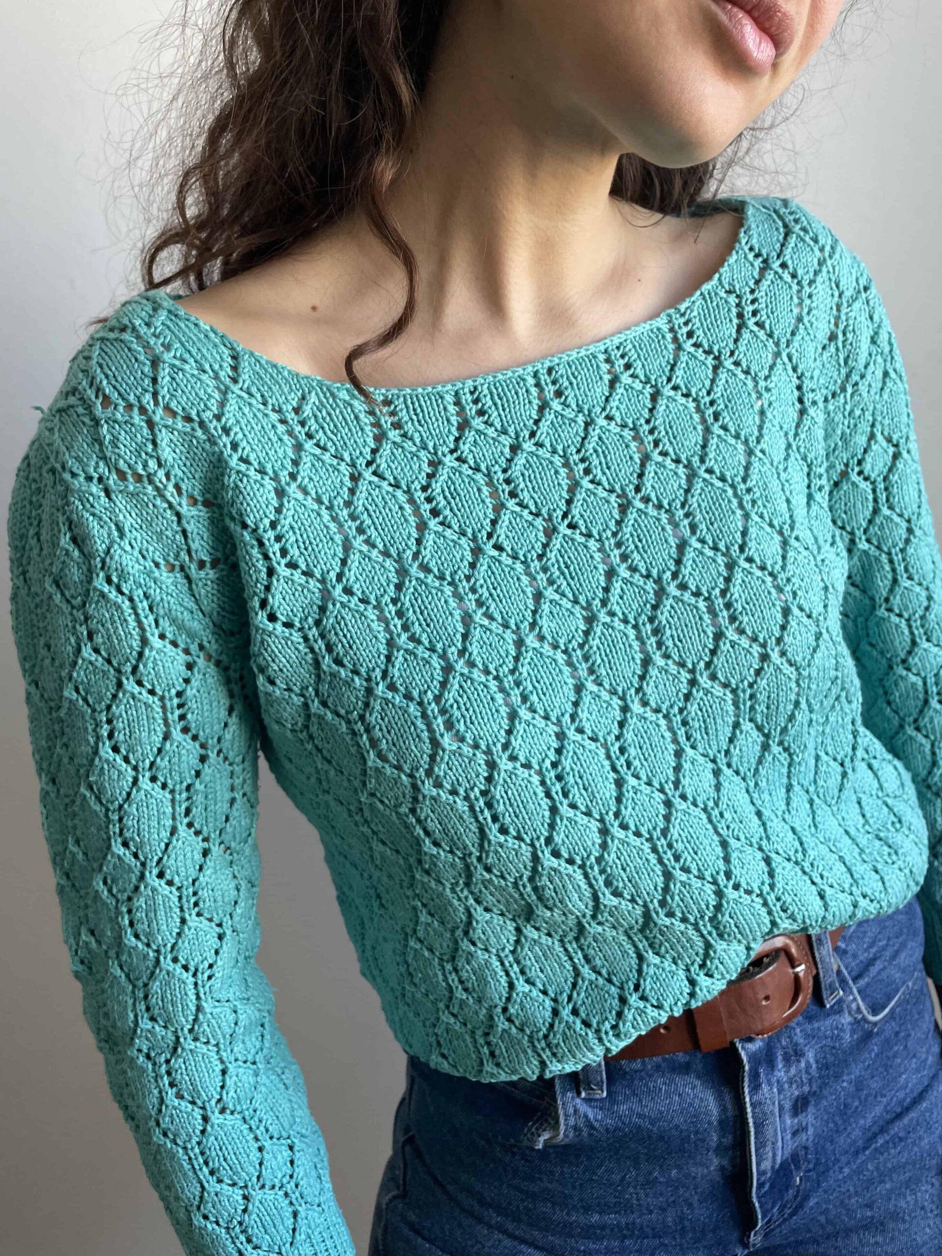 Maglioncino vintage 100% cotone azzurro crochet