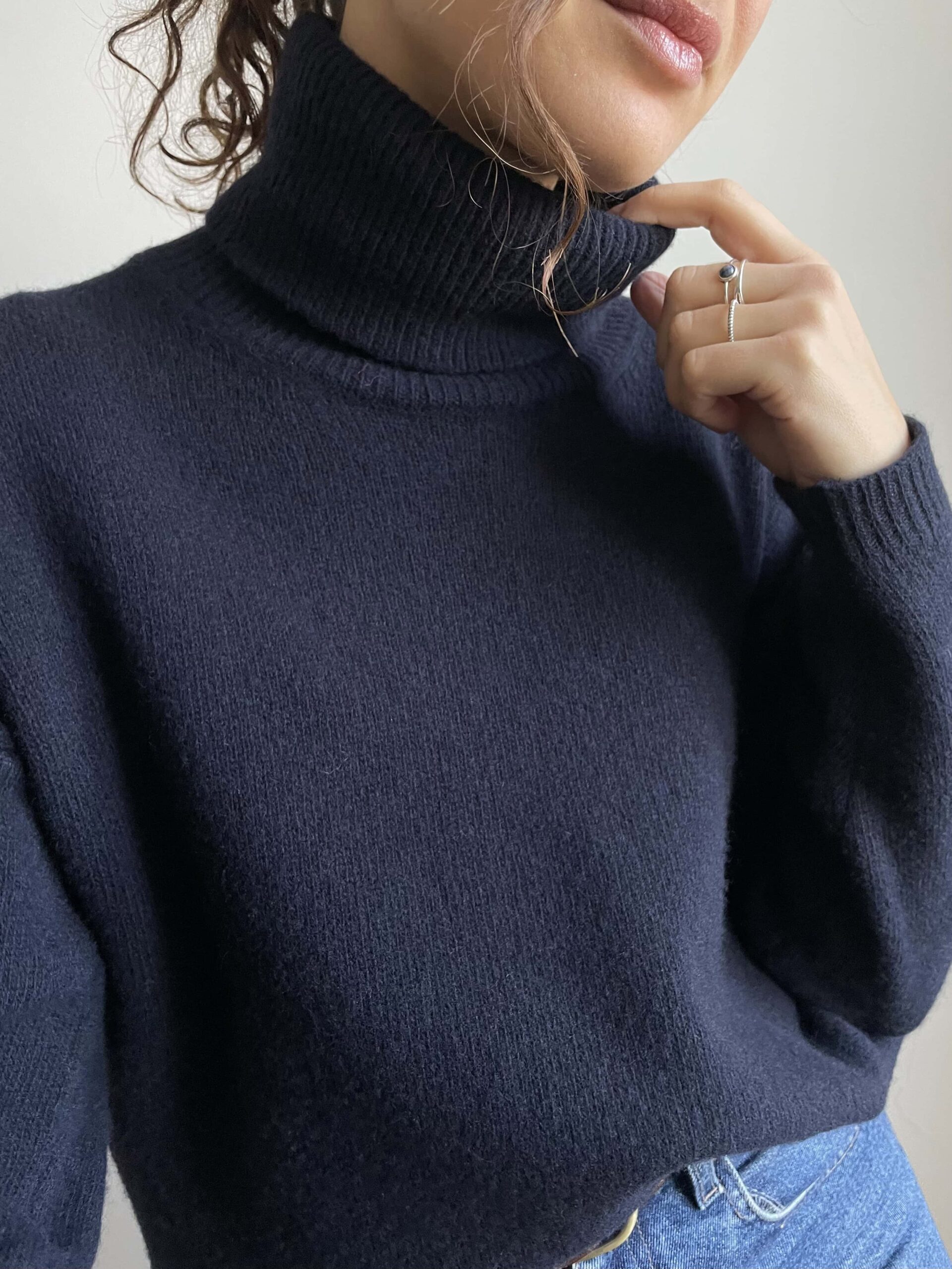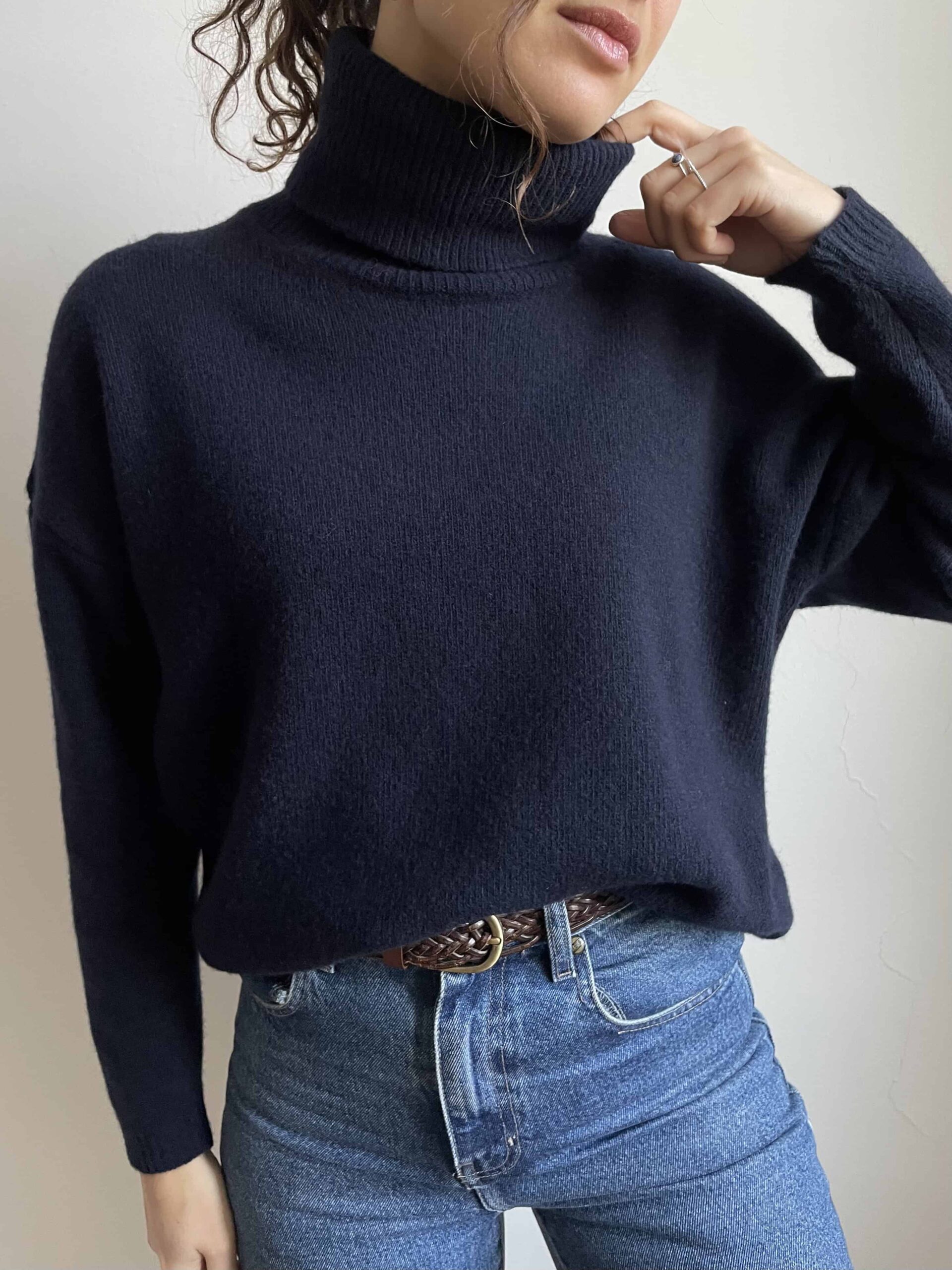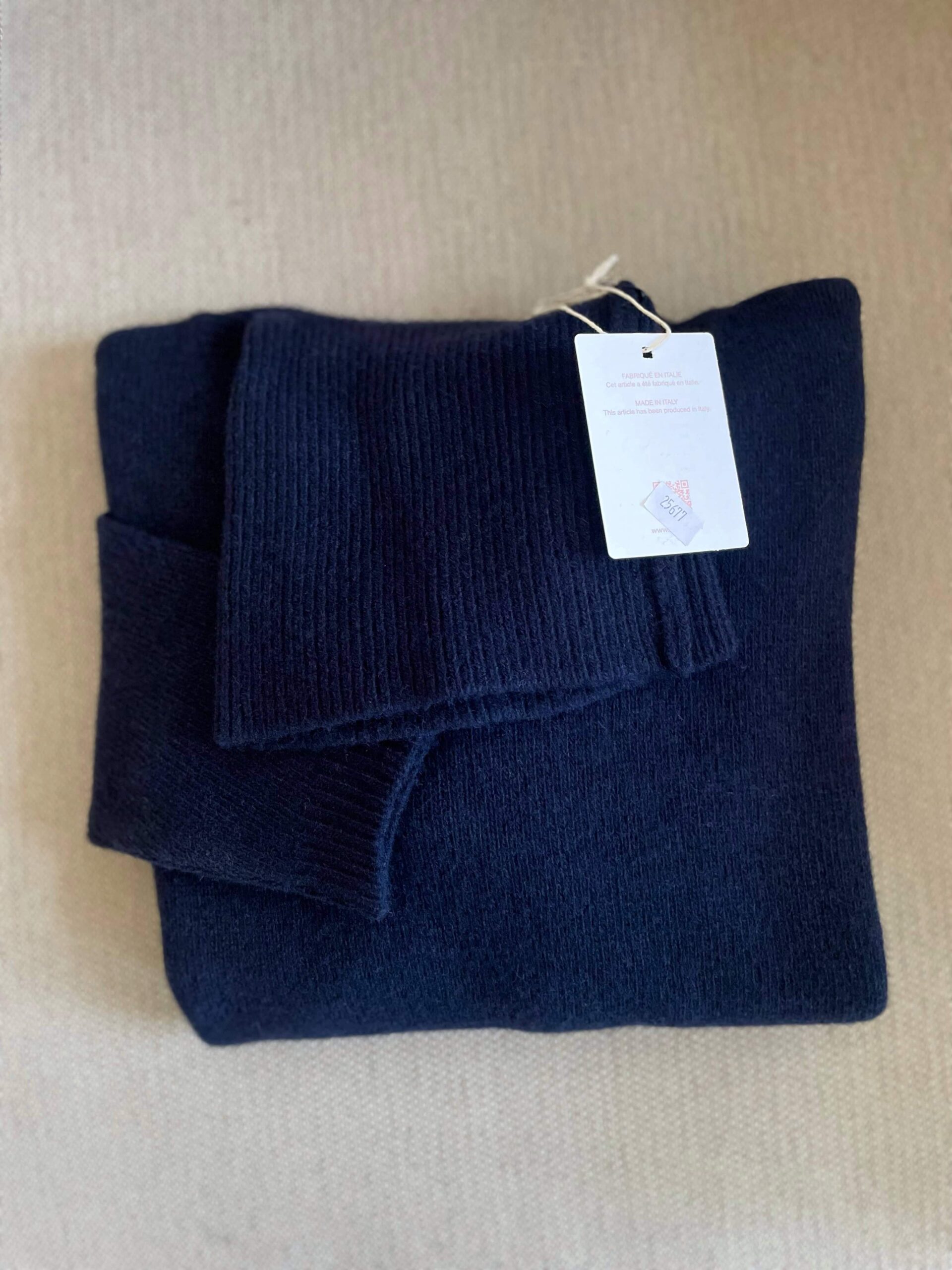 Maglione dolcevita nuovo Made in Italy 100% lana merino blu navy