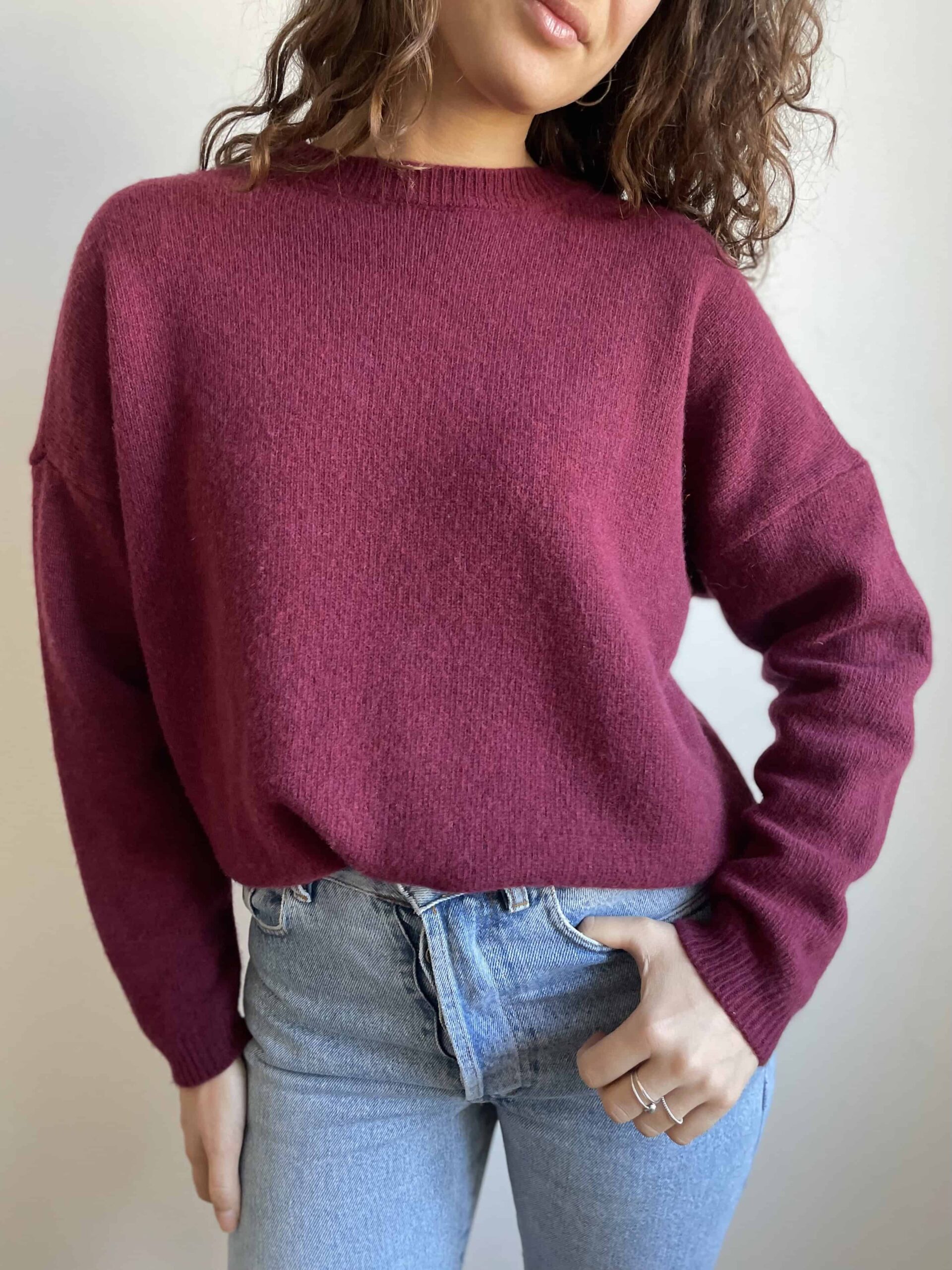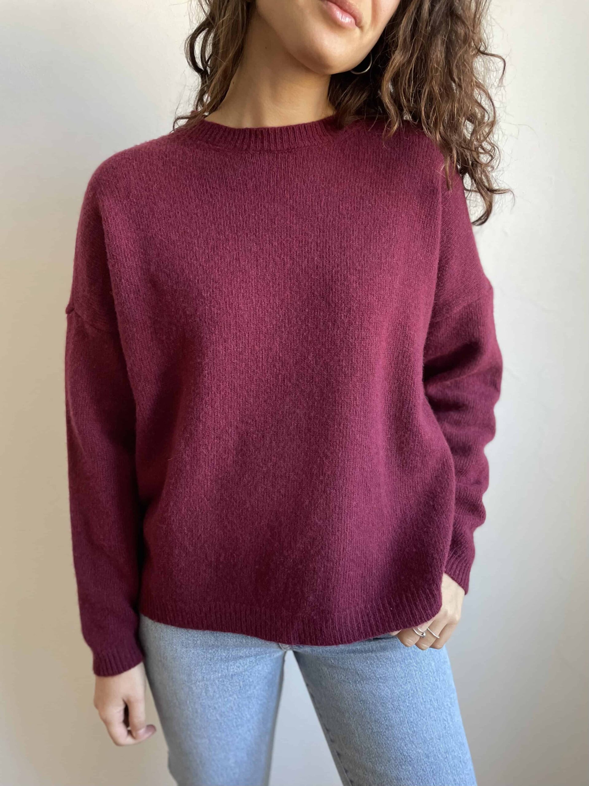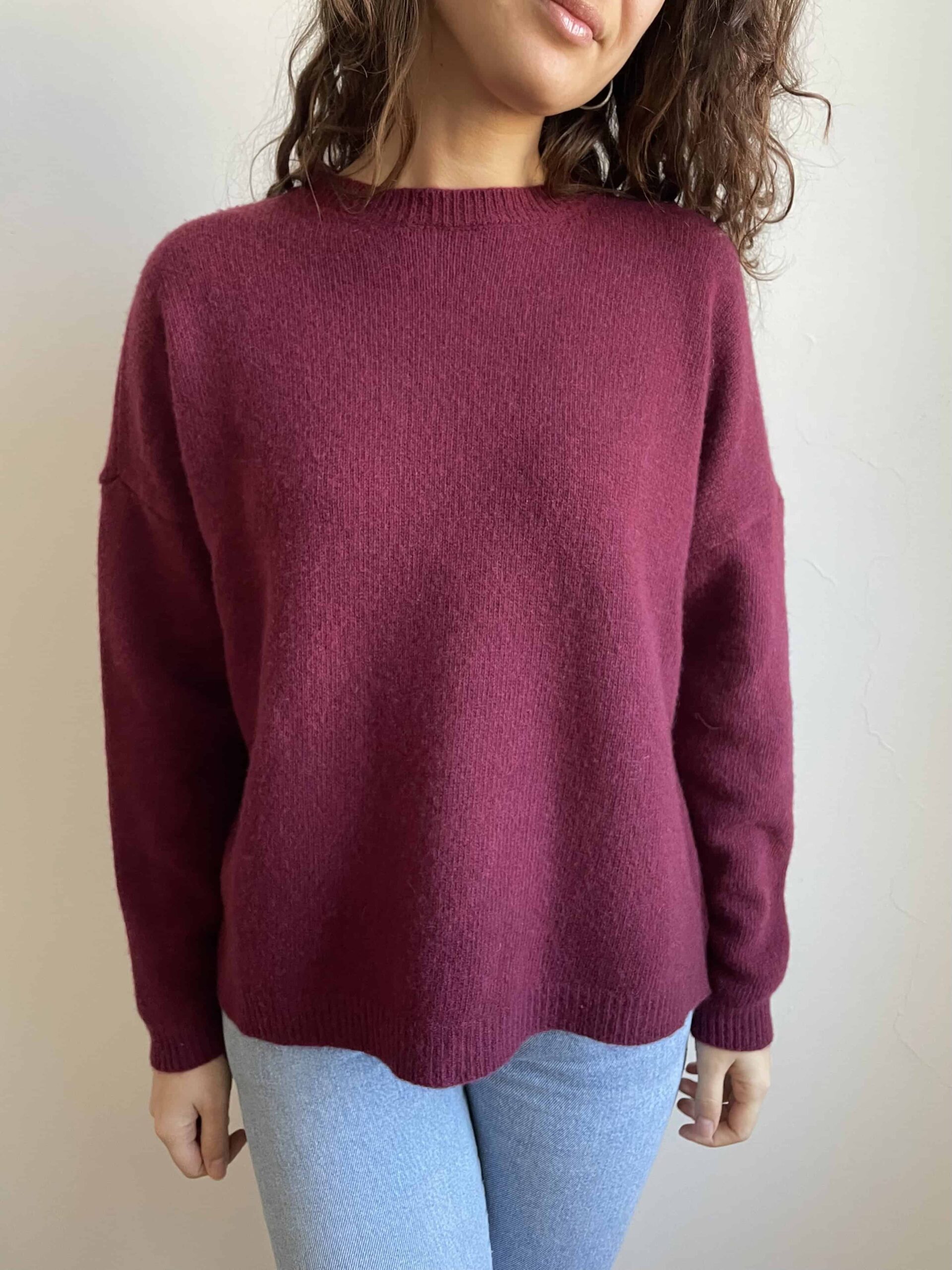 Maglione girocollo nuovo Made in Italy 100% lana merino vinaccia