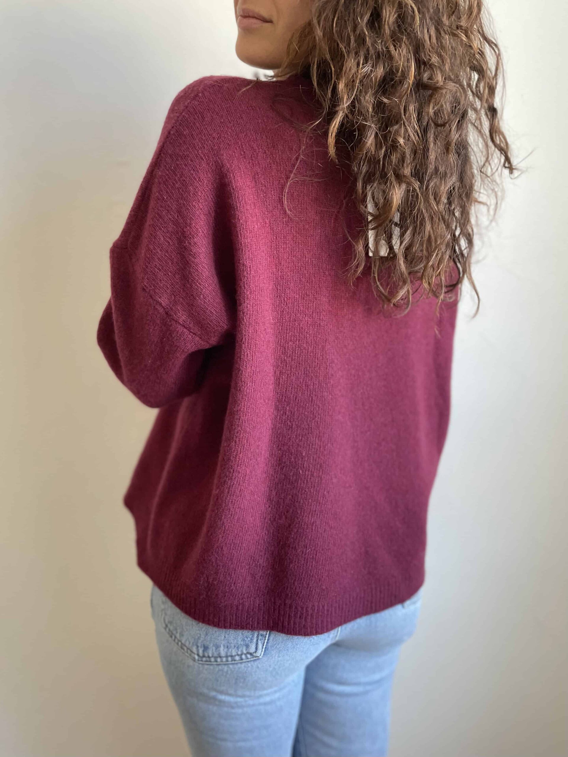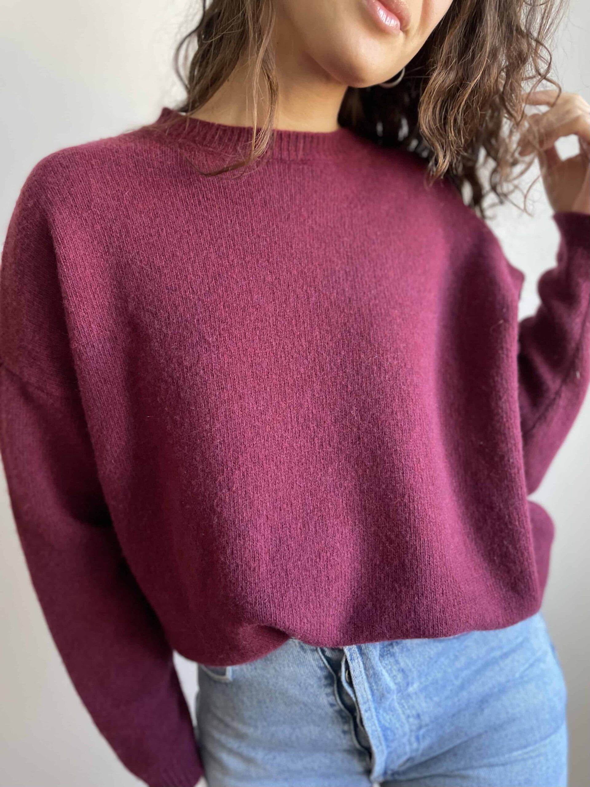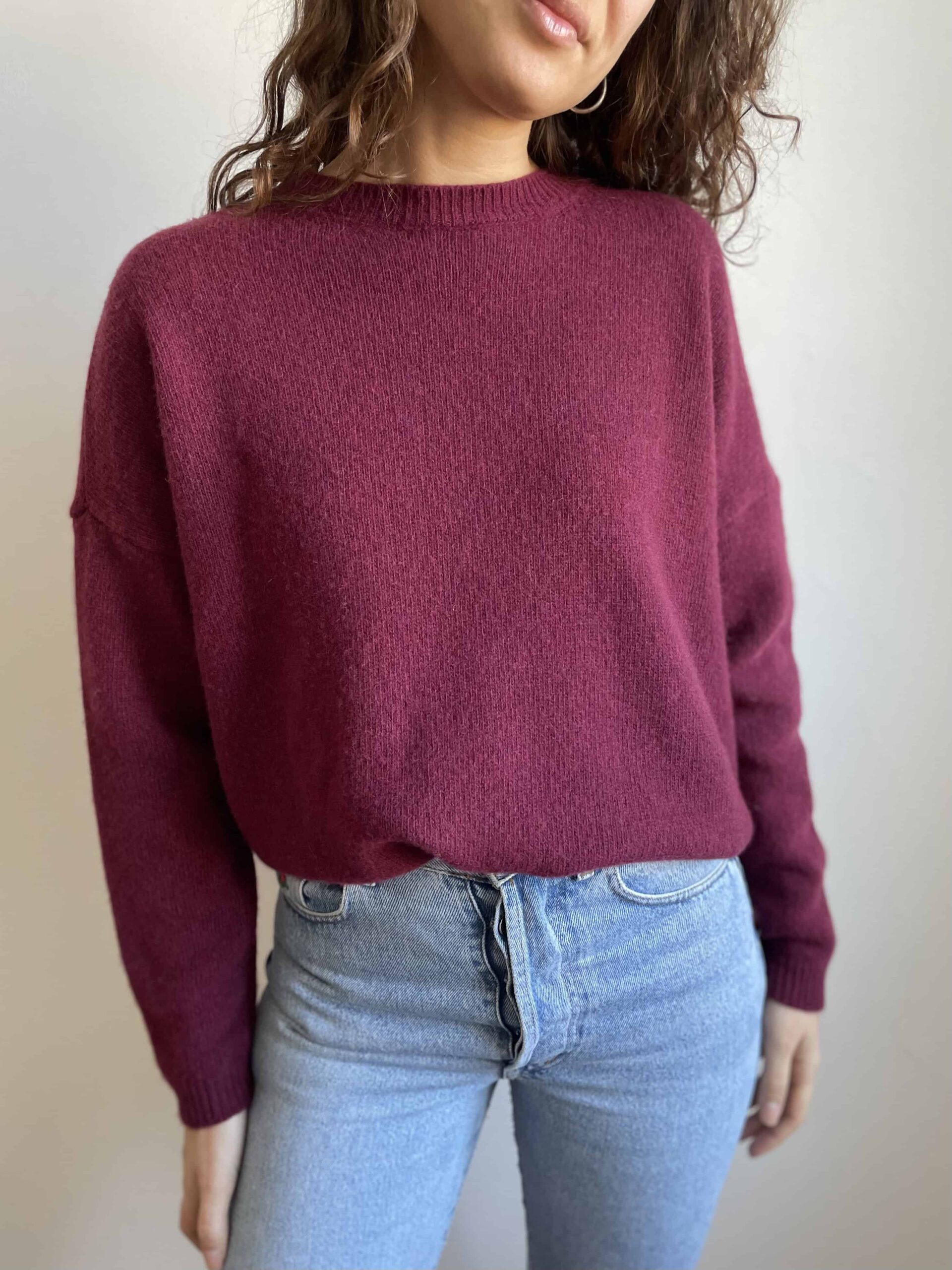 Maglione girocollo nuovo Made in Italy 100% lana merino vinaccia