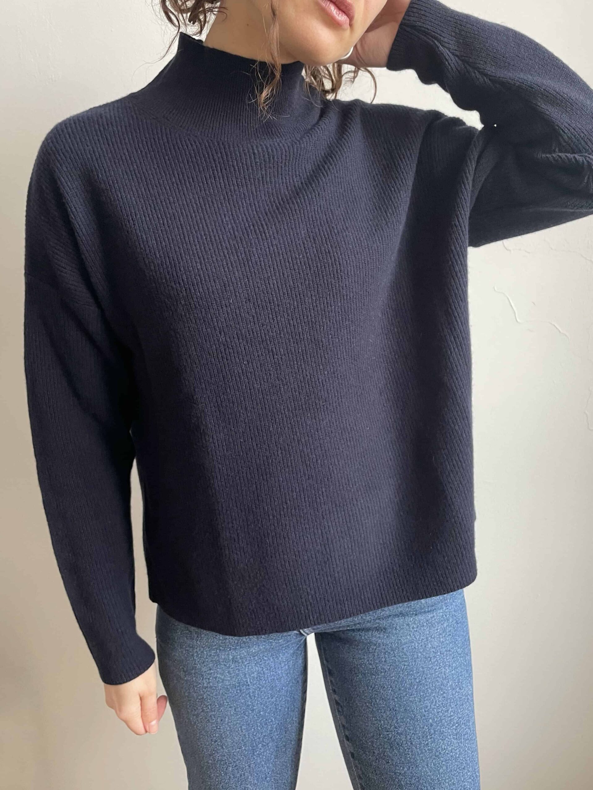 Maglione lupetto nuovo Made in Italy 100% lana merino blu navy