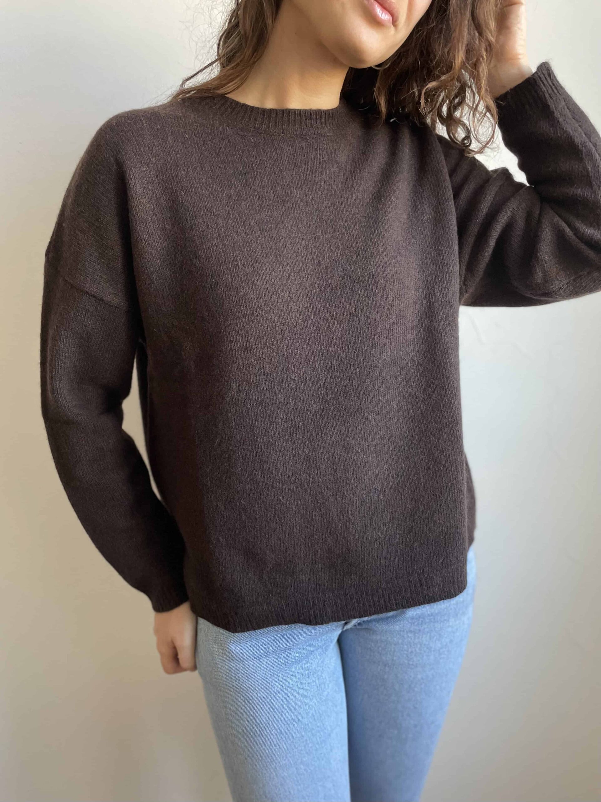 Maglione nuovo Made in Italy 100% lana merino cioccolato