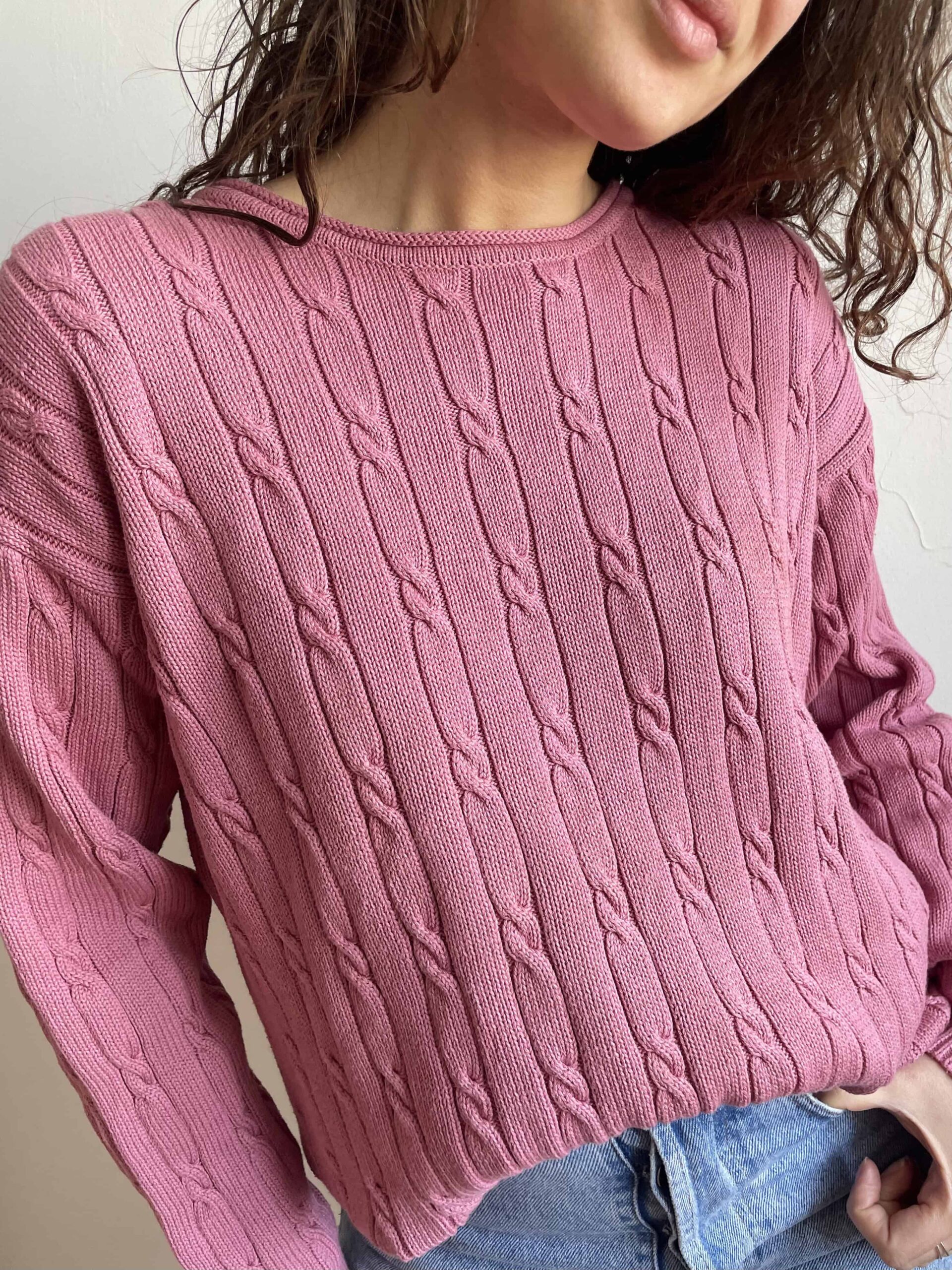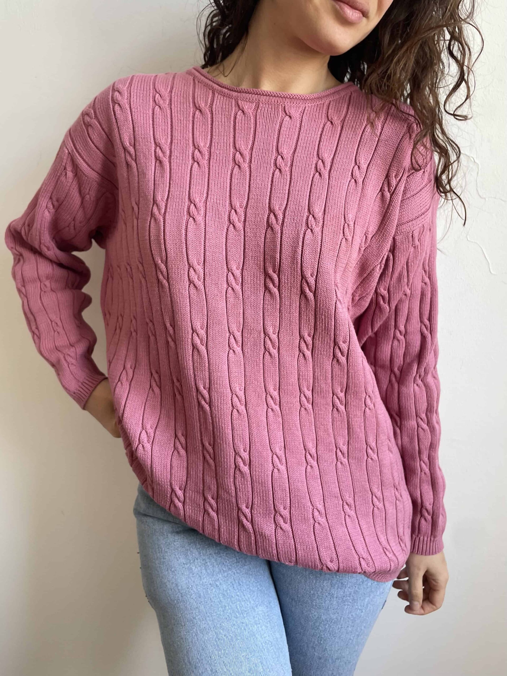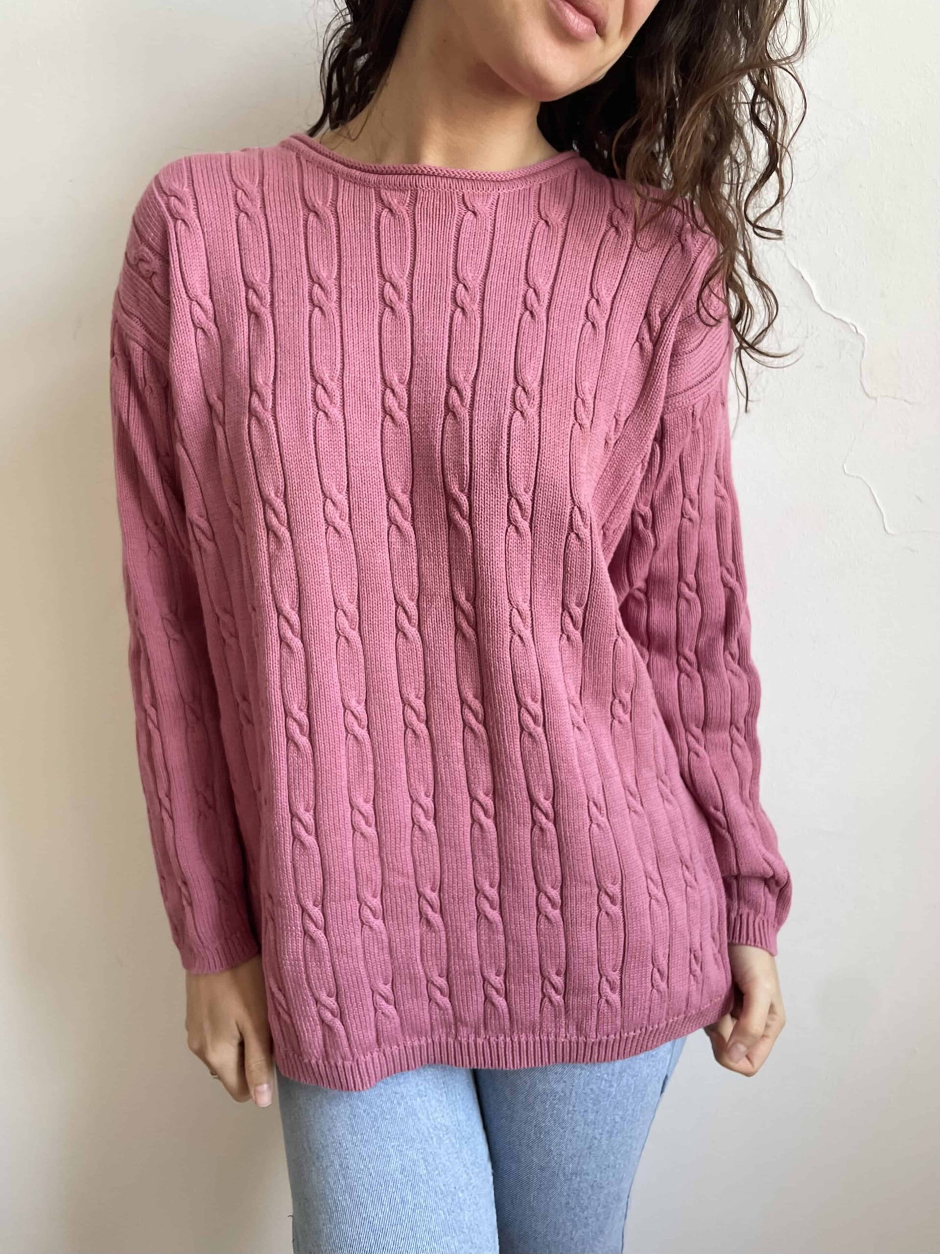 Maglione vintage 100% cotone a trecce rosa malva