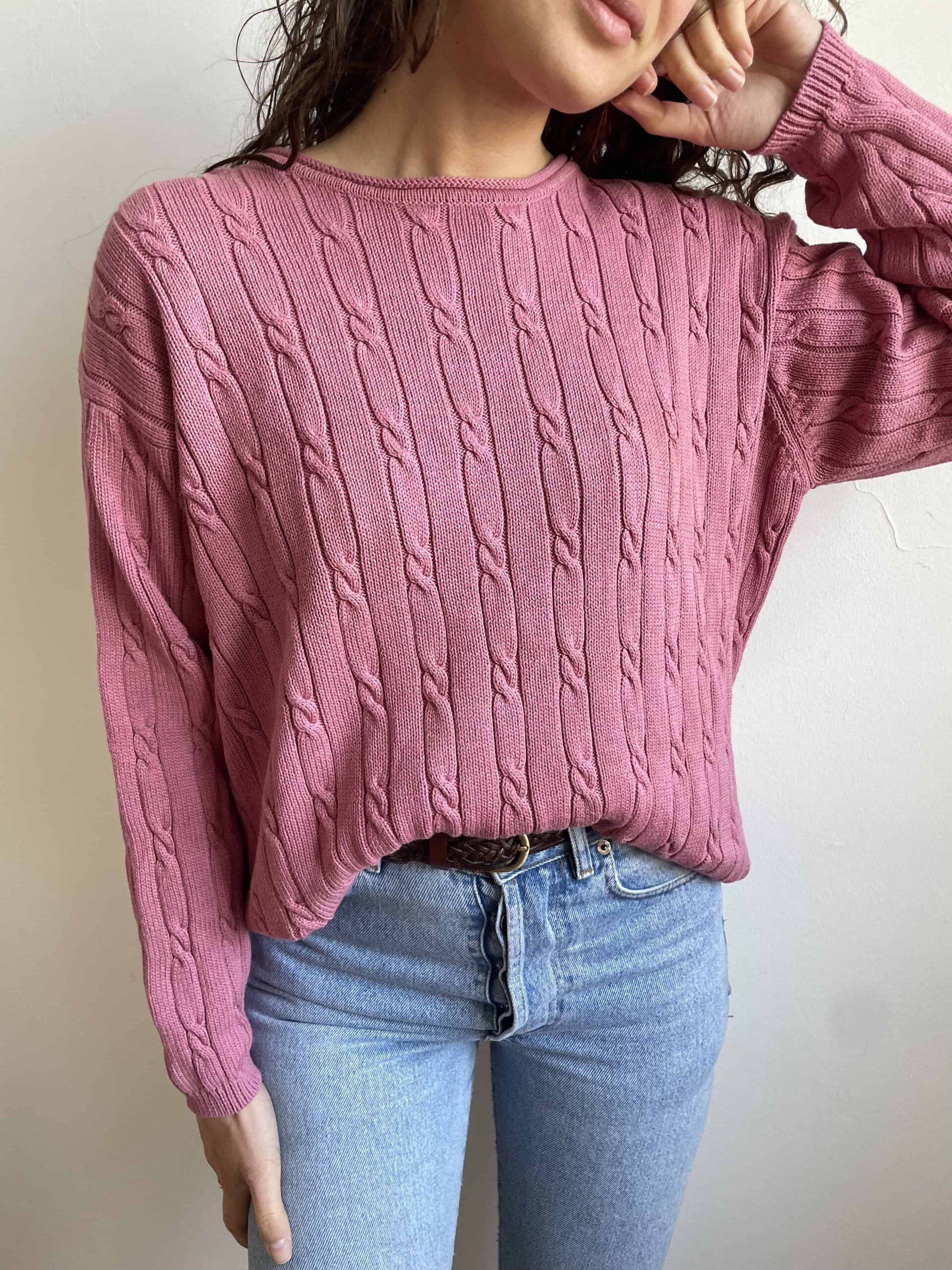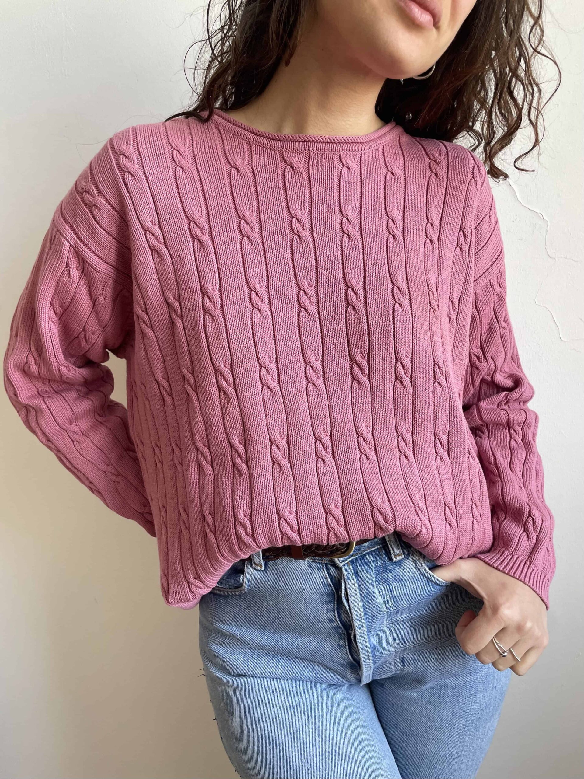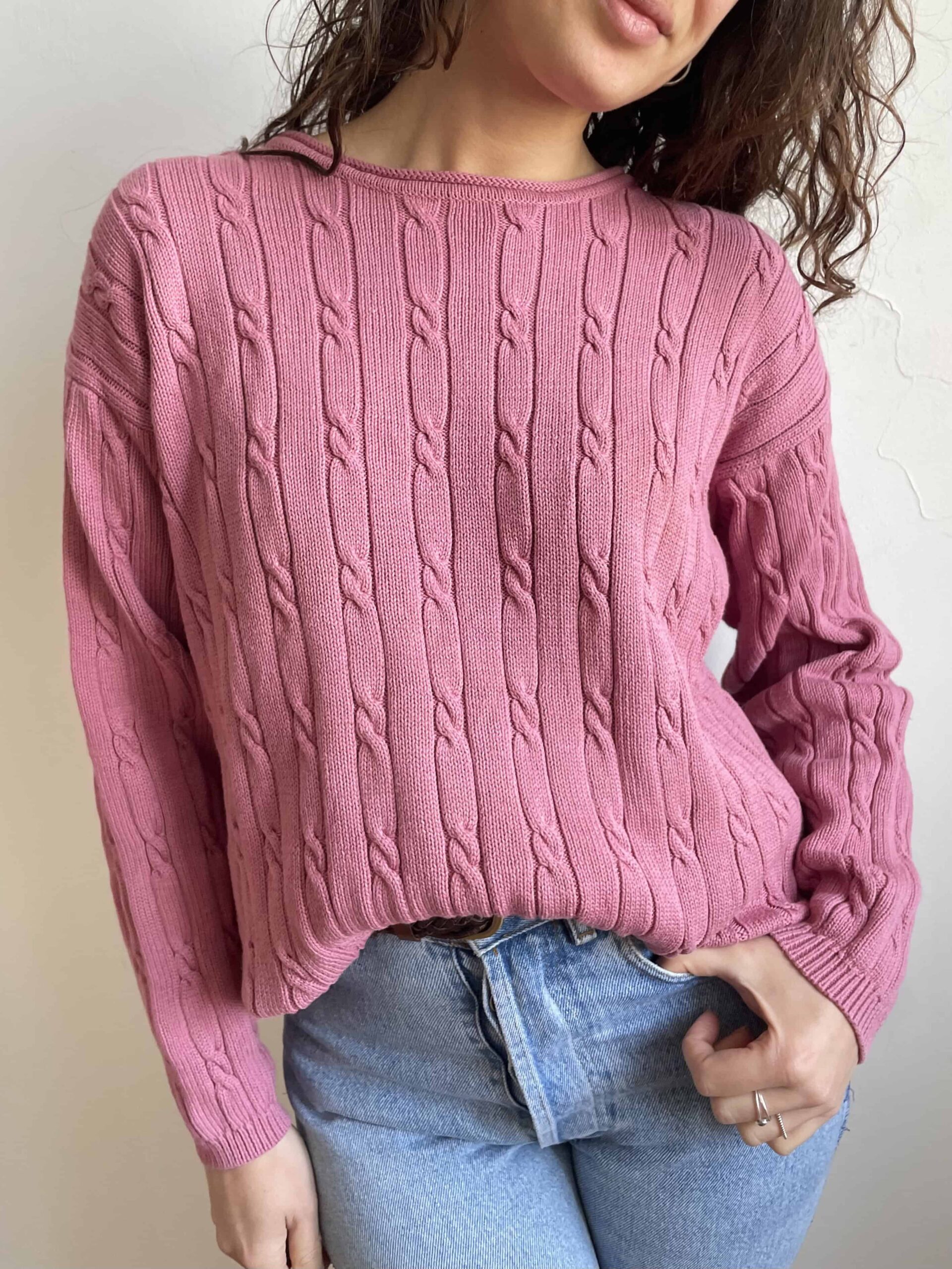 Maglione vintage 100% cotone a trecce rosa malva