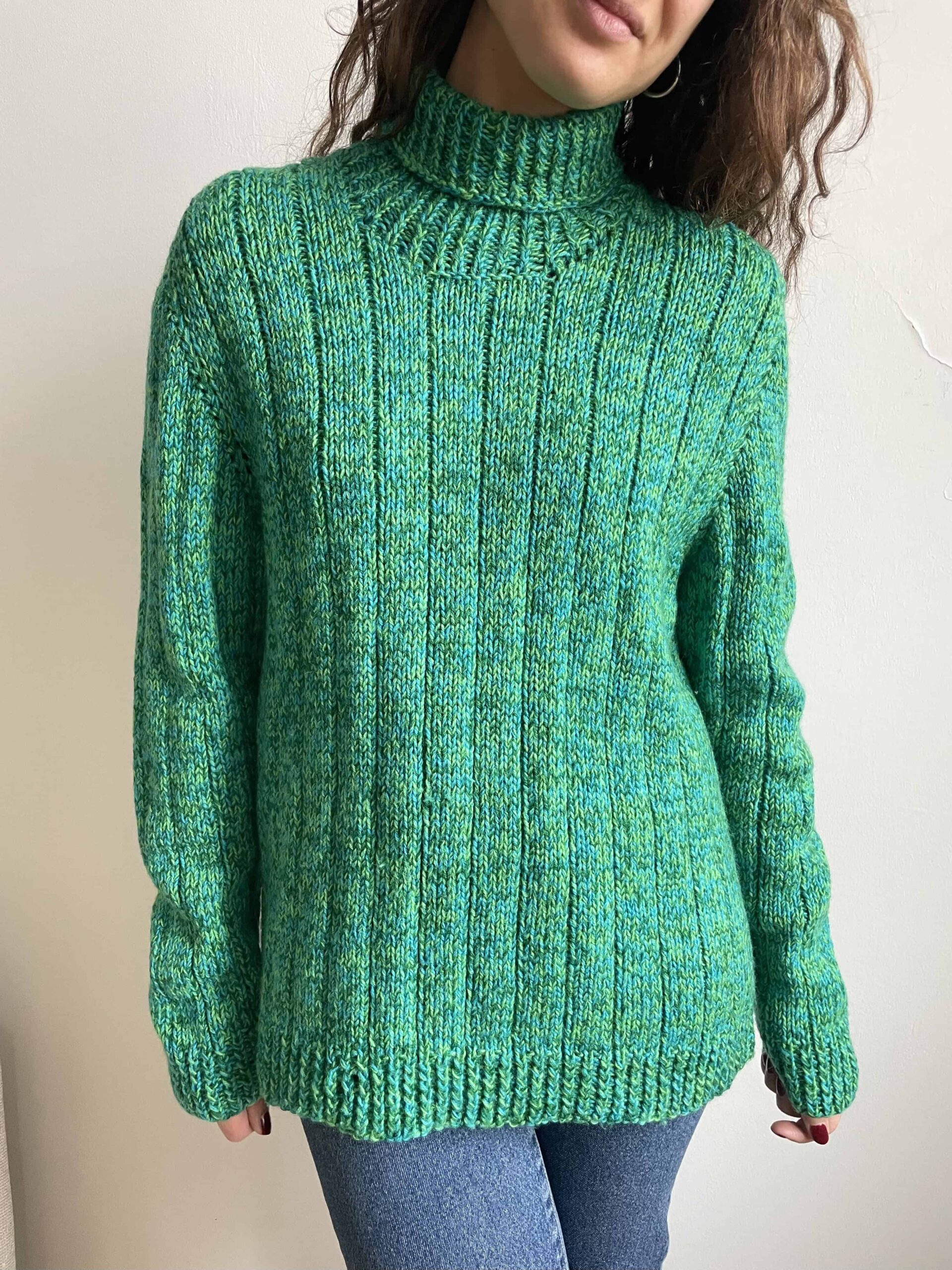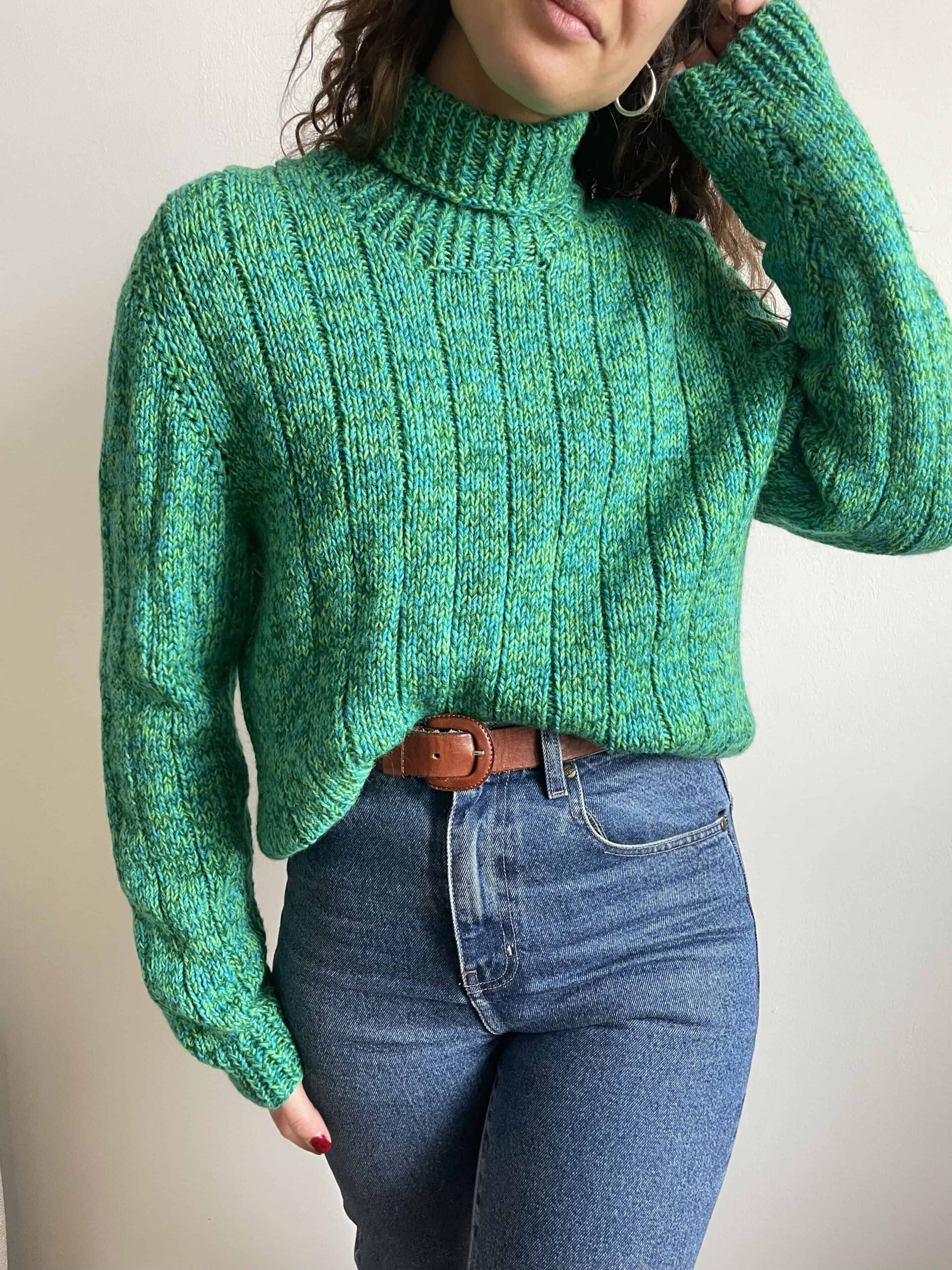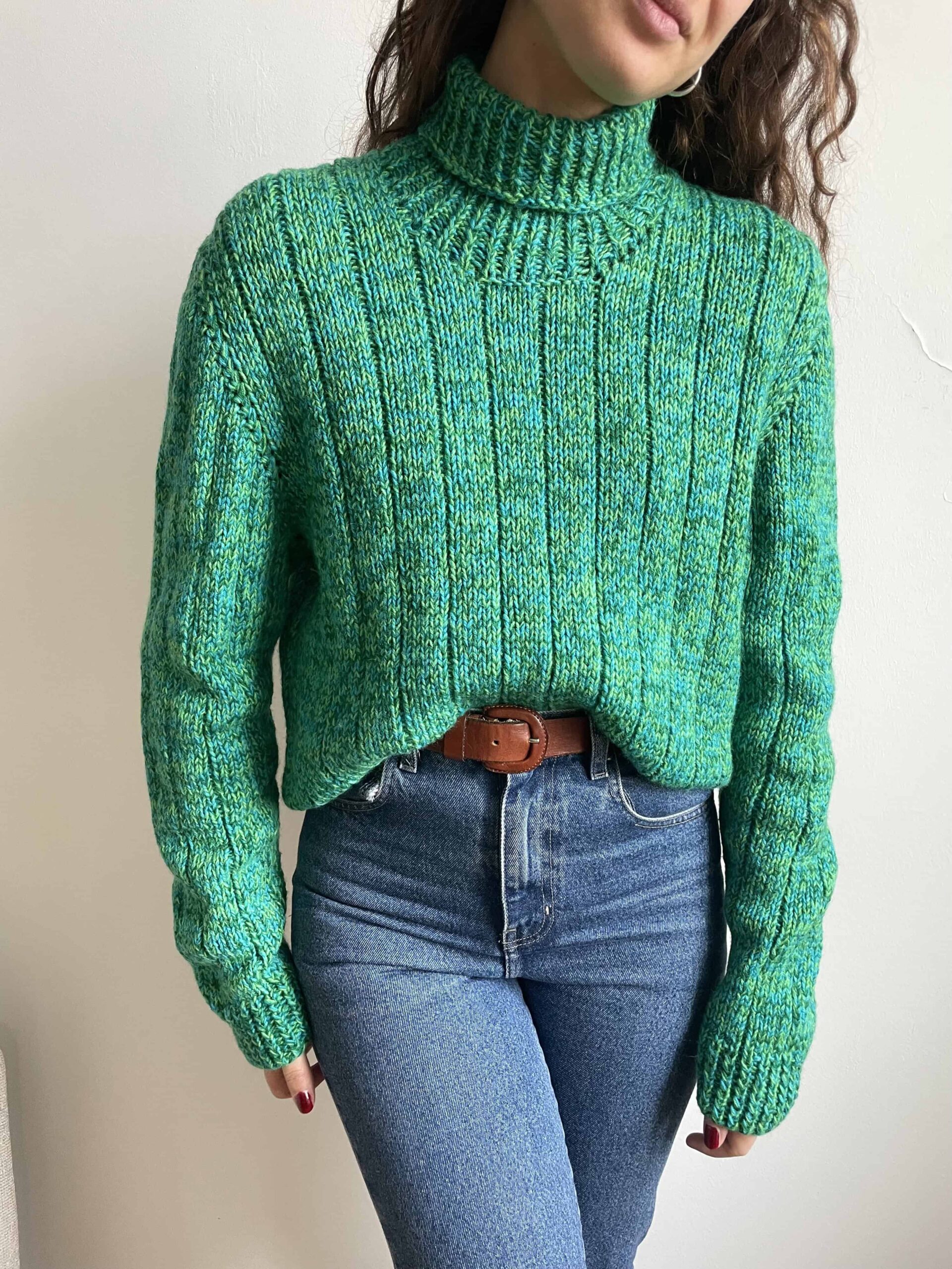 Maglione vintage dolcevita fatto a mano 100% lana verde e blu