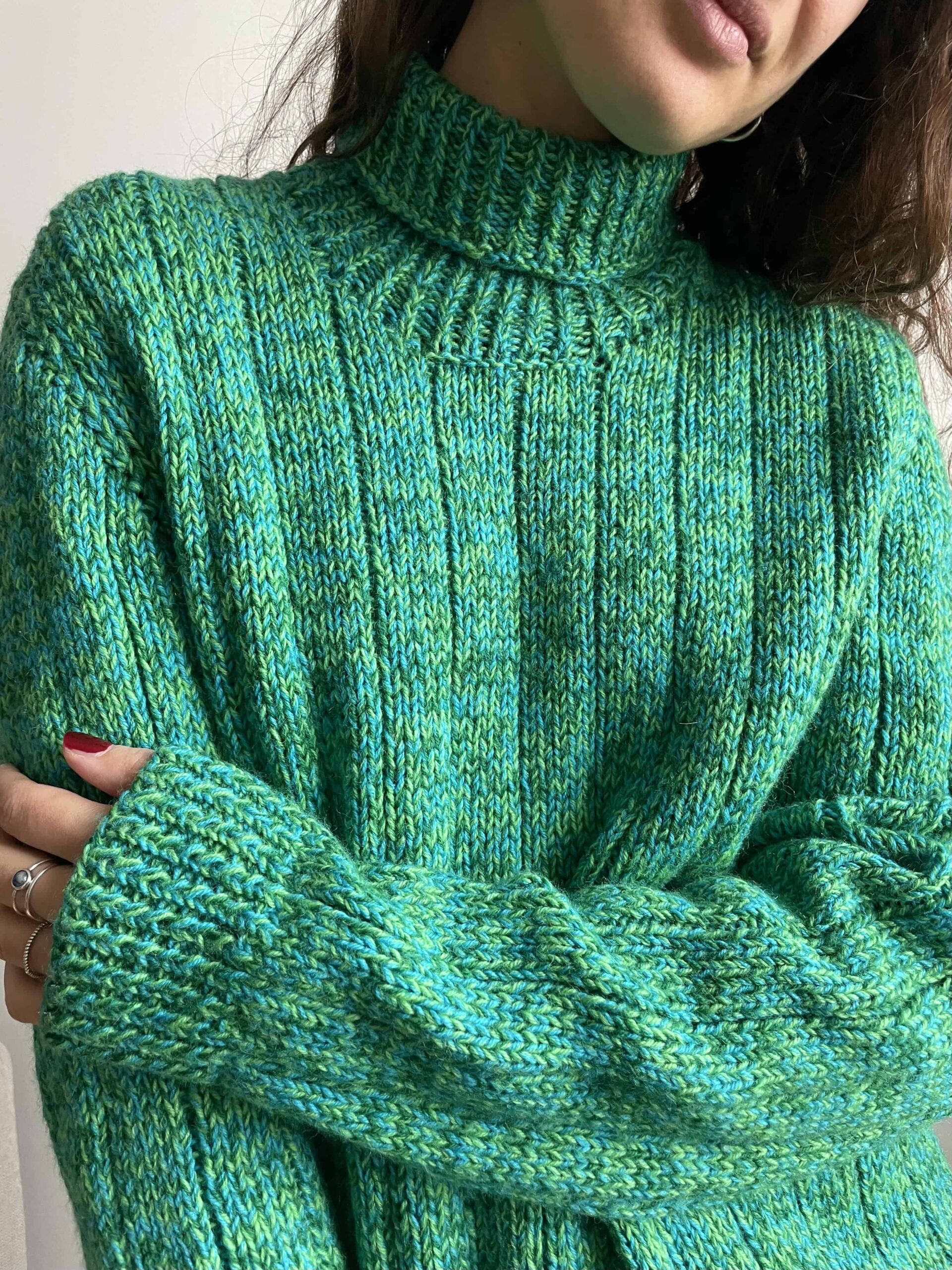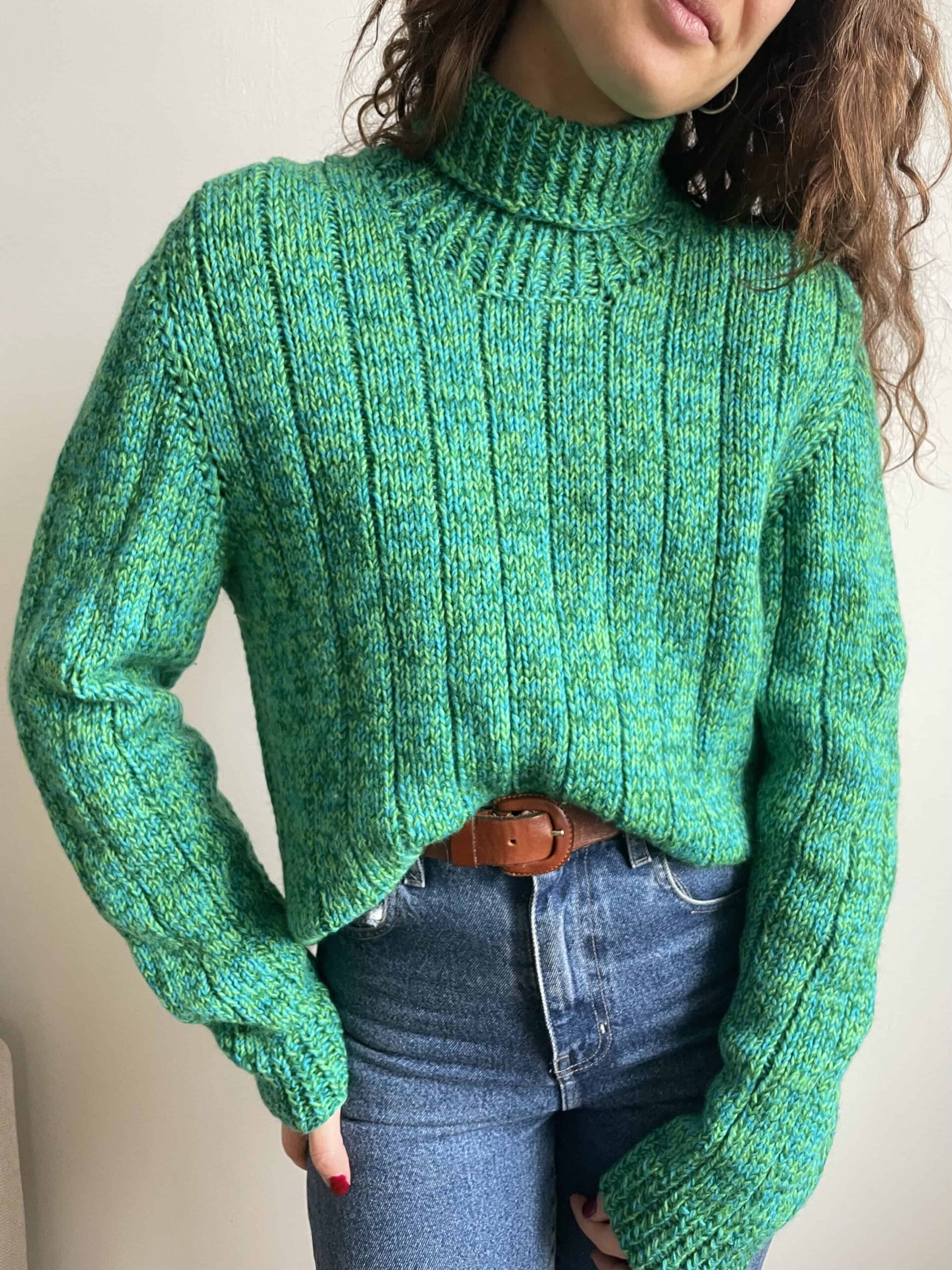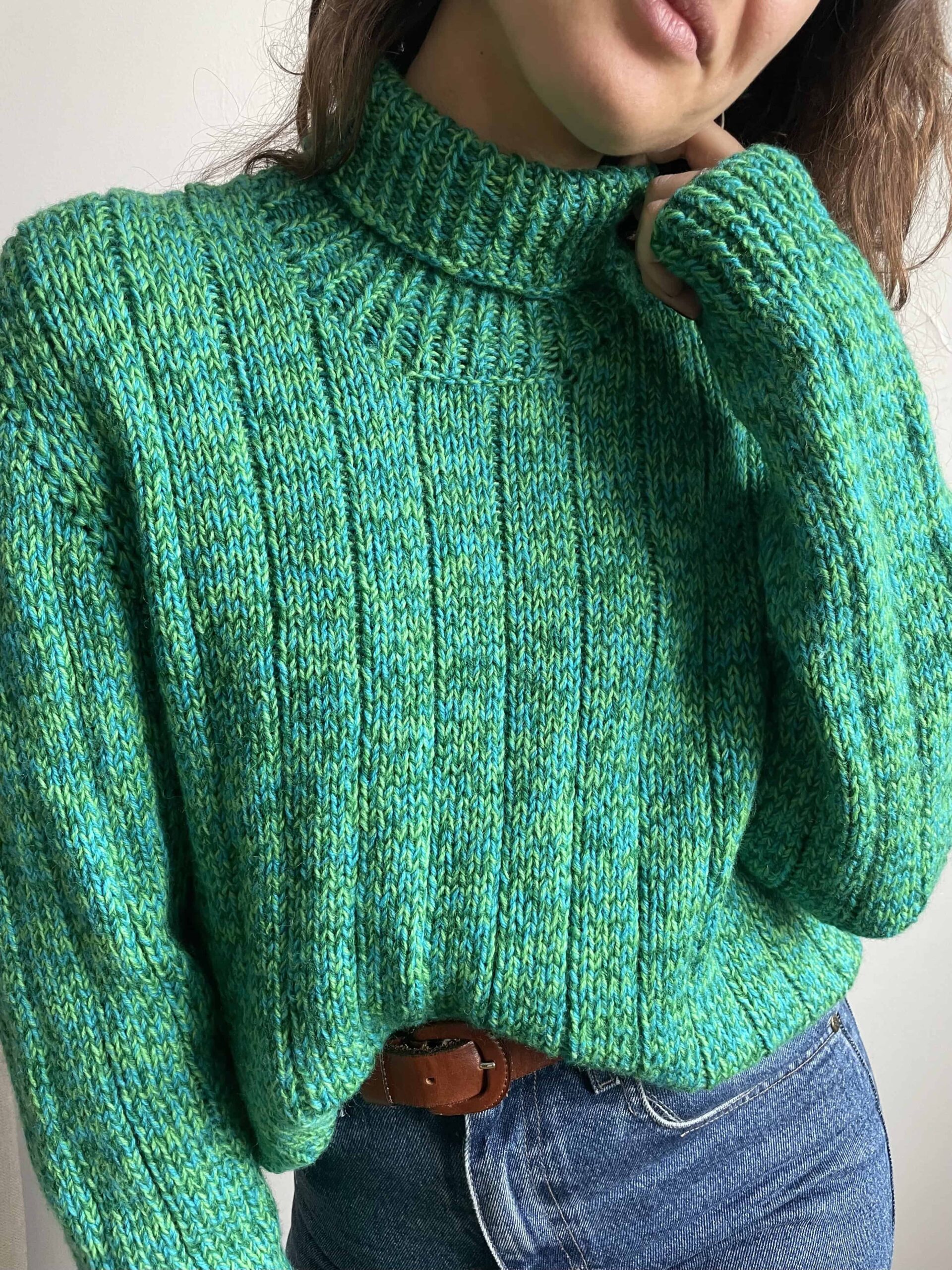 Maglione vintage dolcevita fatto a mano 100% lana verde e blu