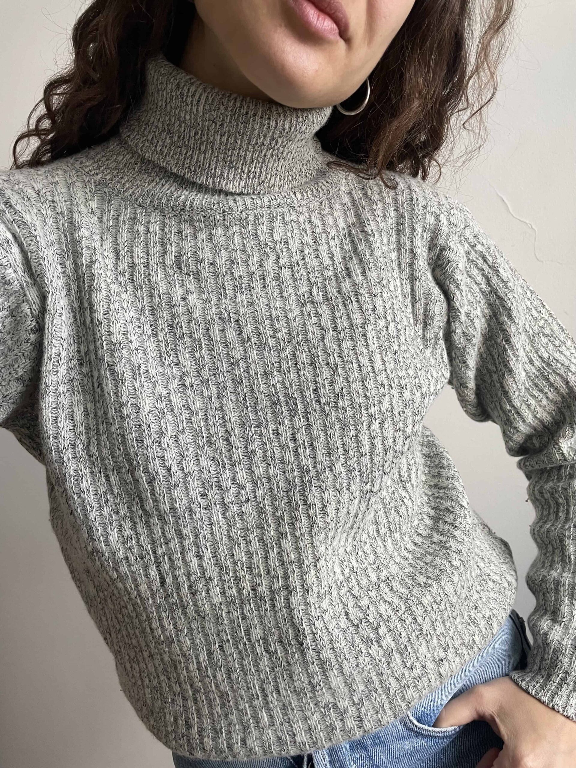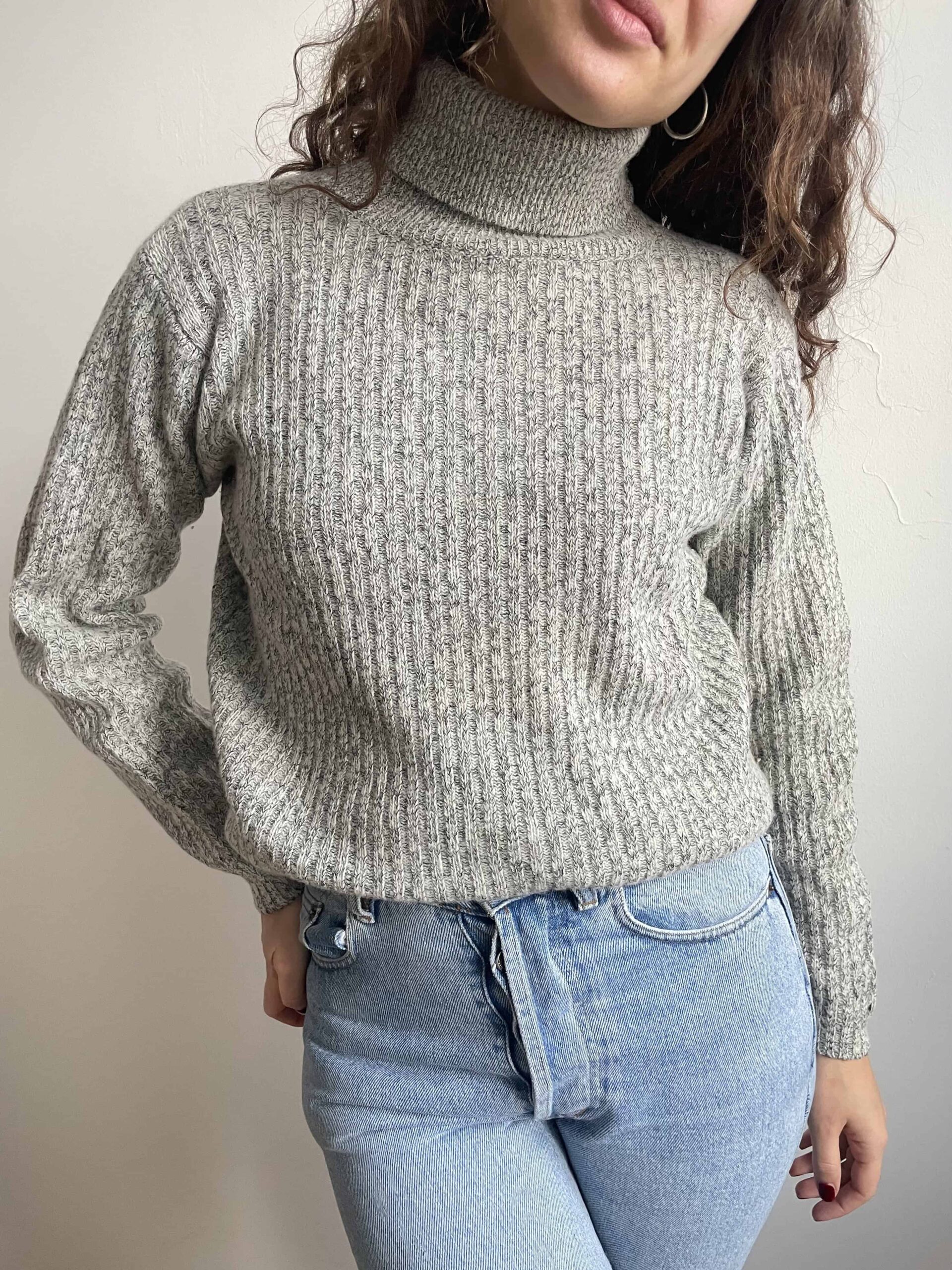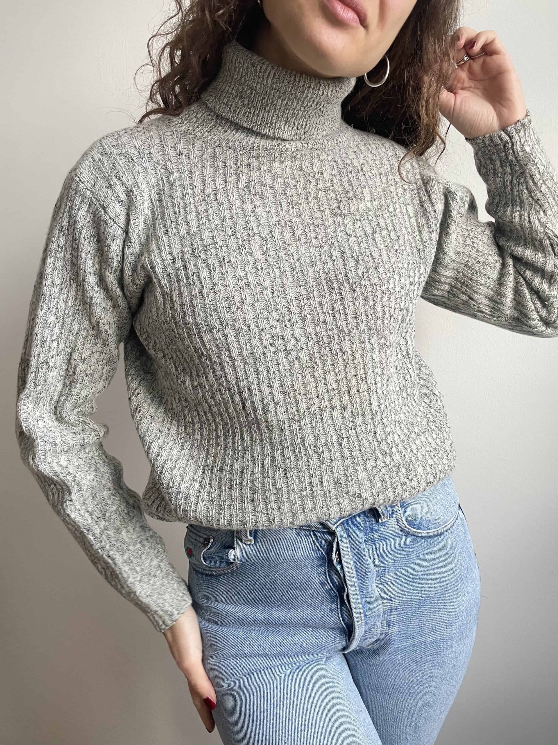 Maglione vintage dolcevita in 80% lana di agnello grigio e bianco
