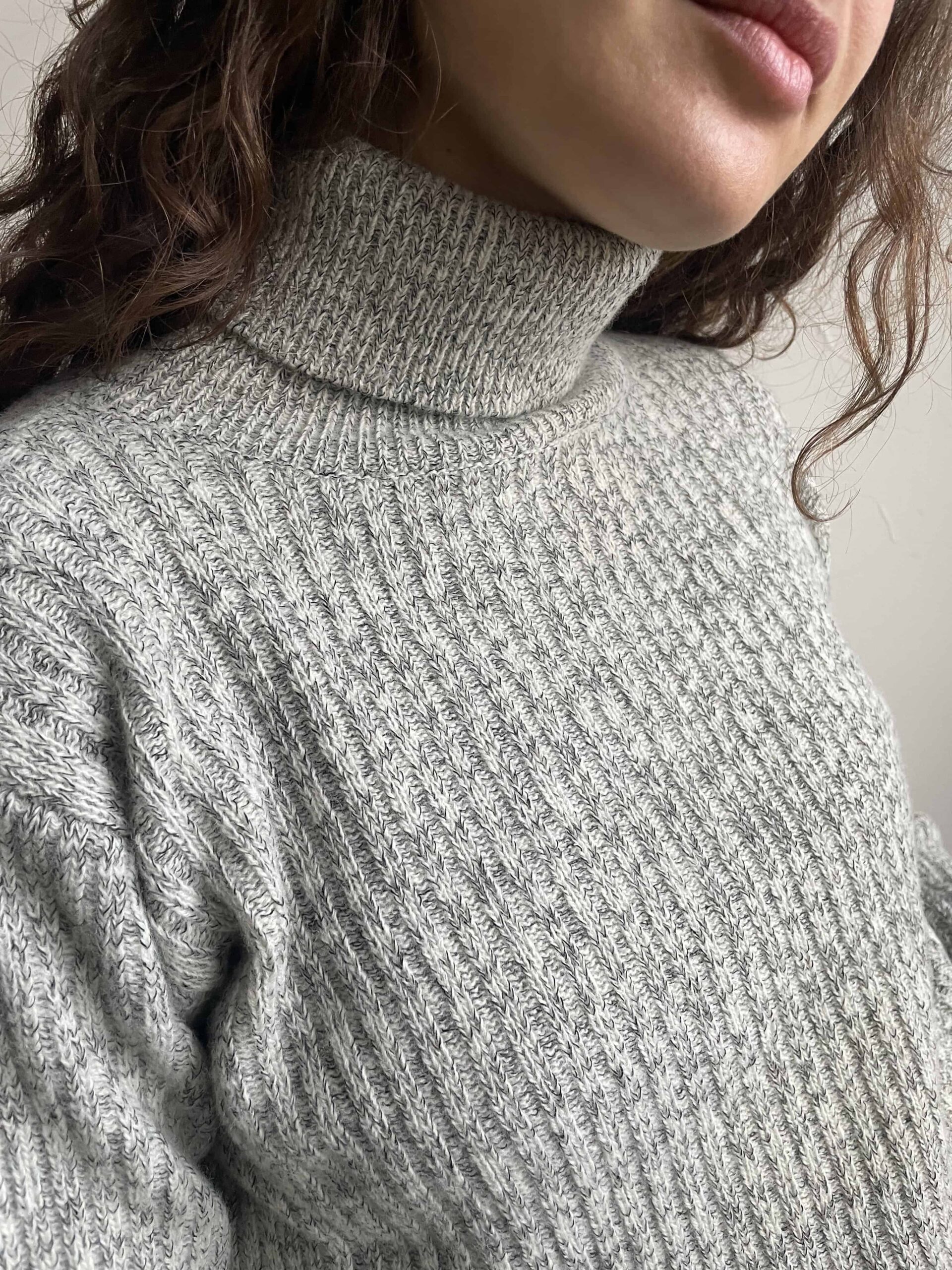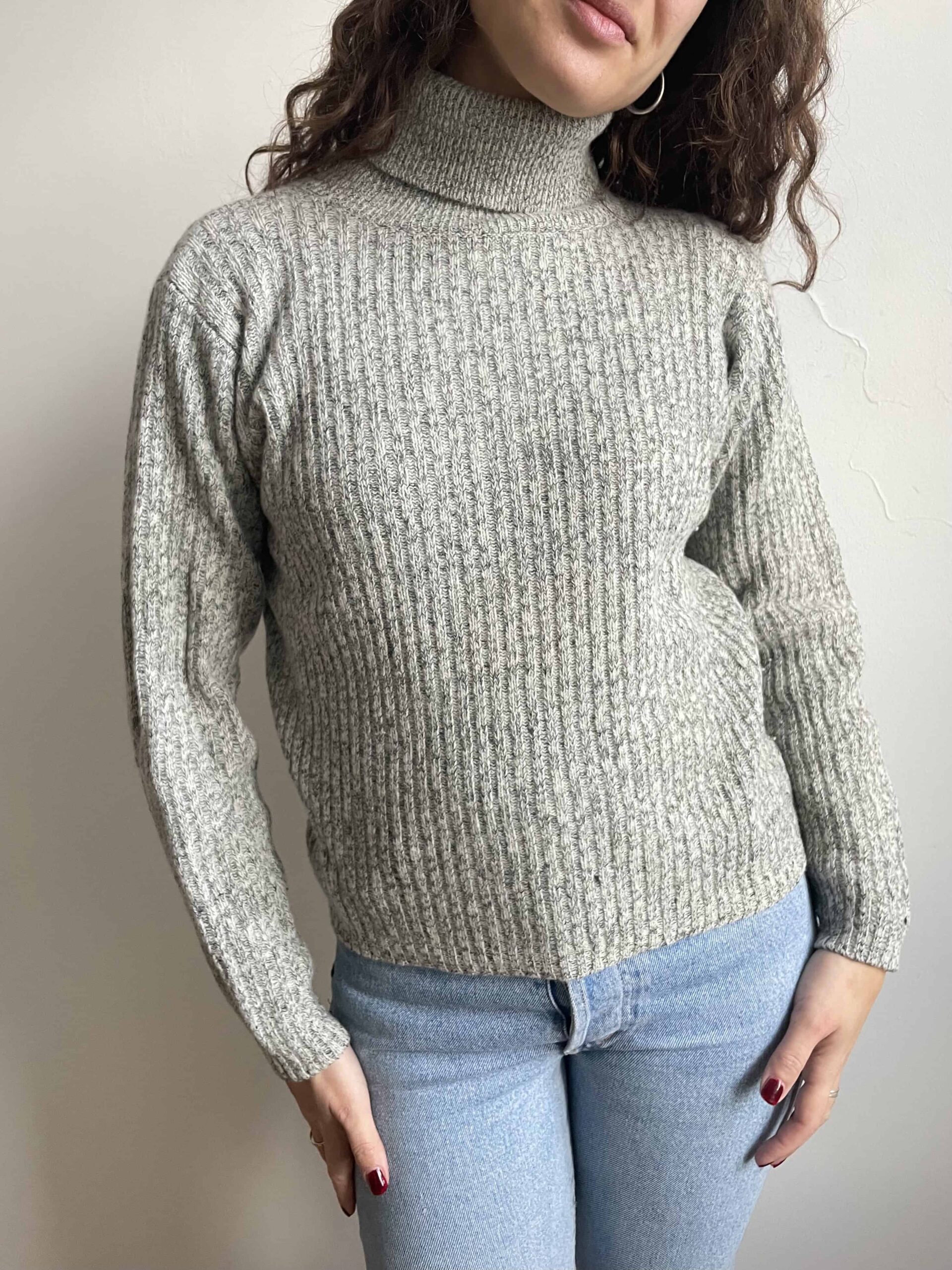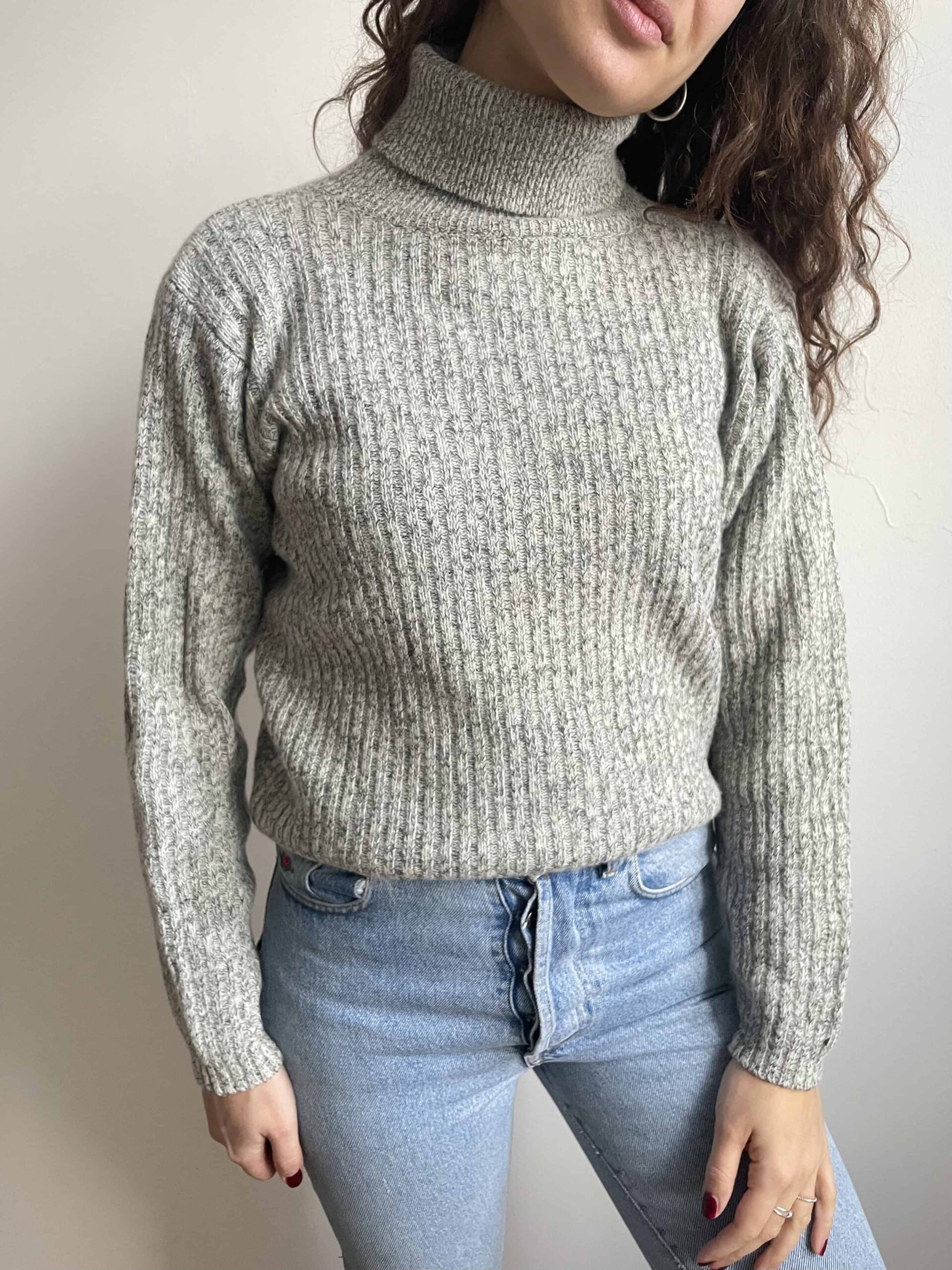 Maglione vintage dolcevita in 80% lana di agnello grigio e bianco