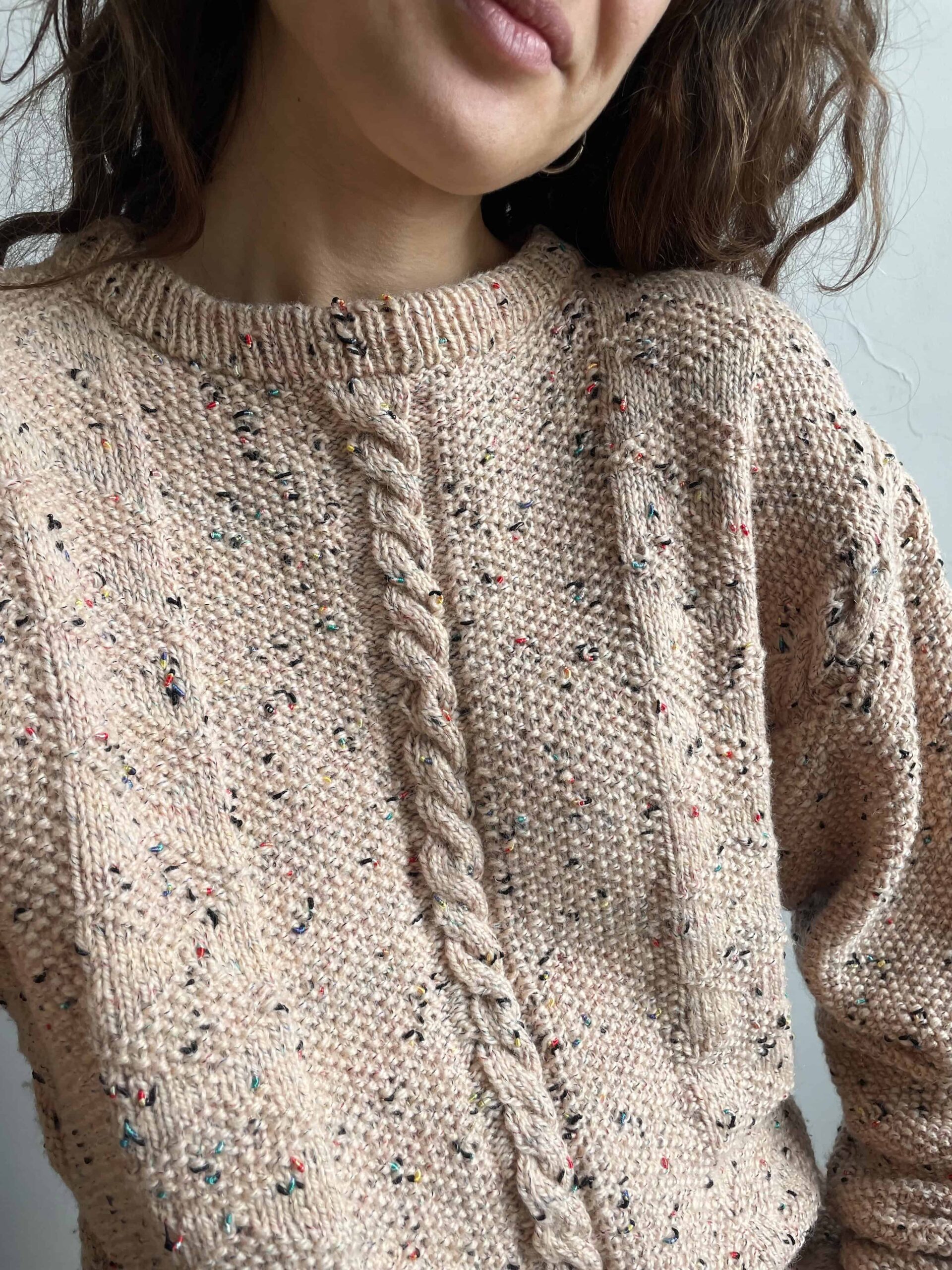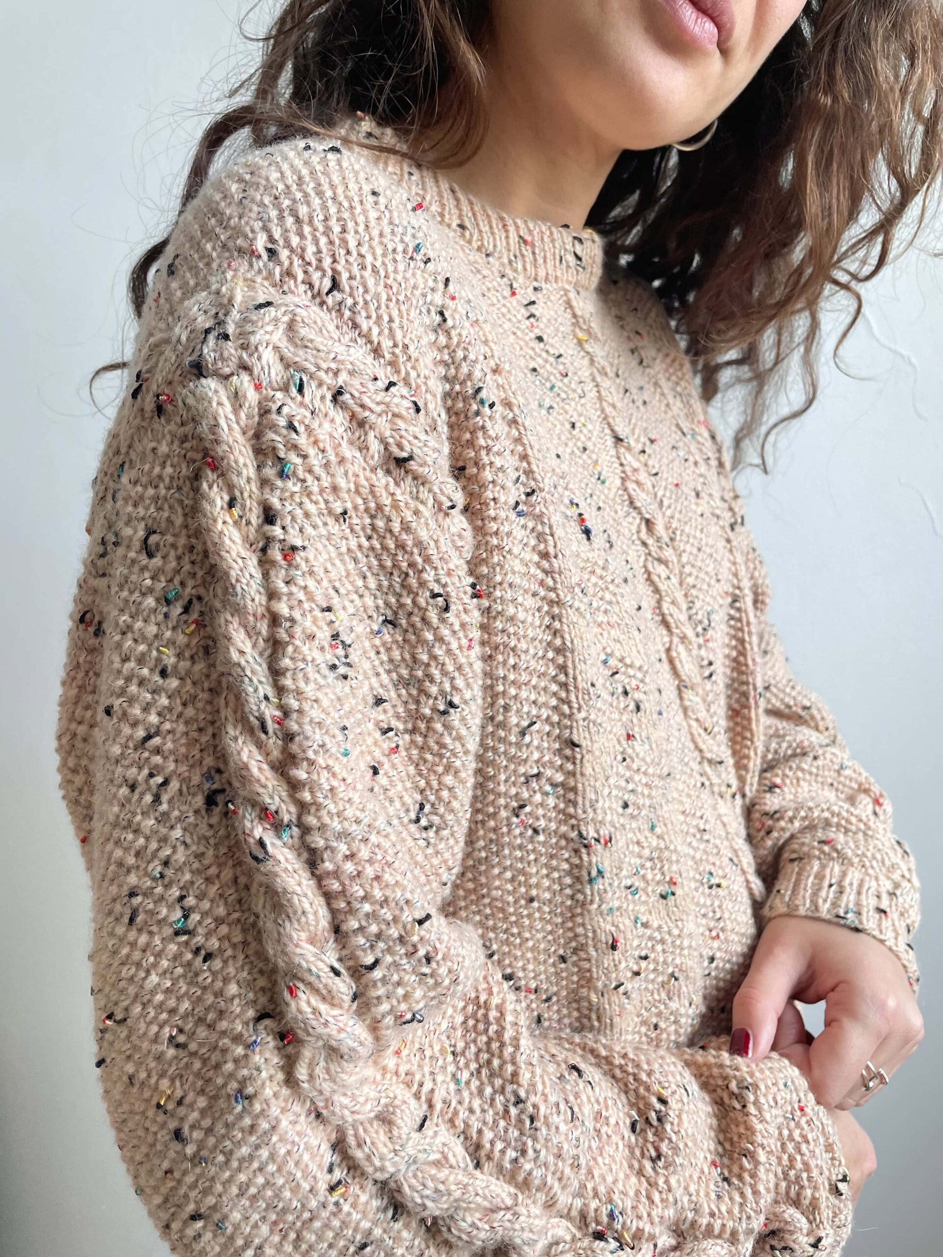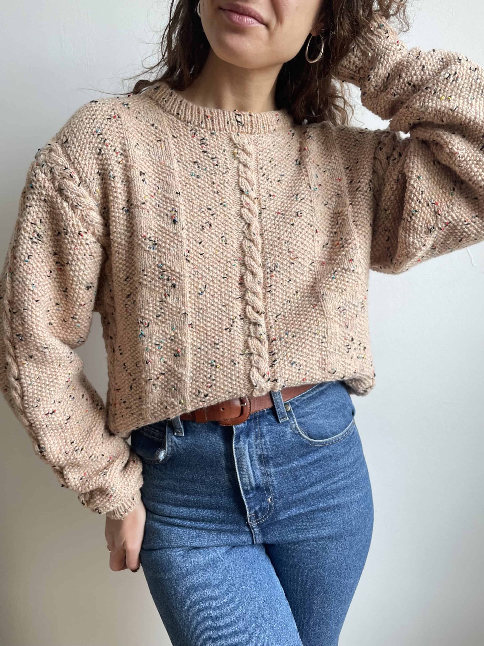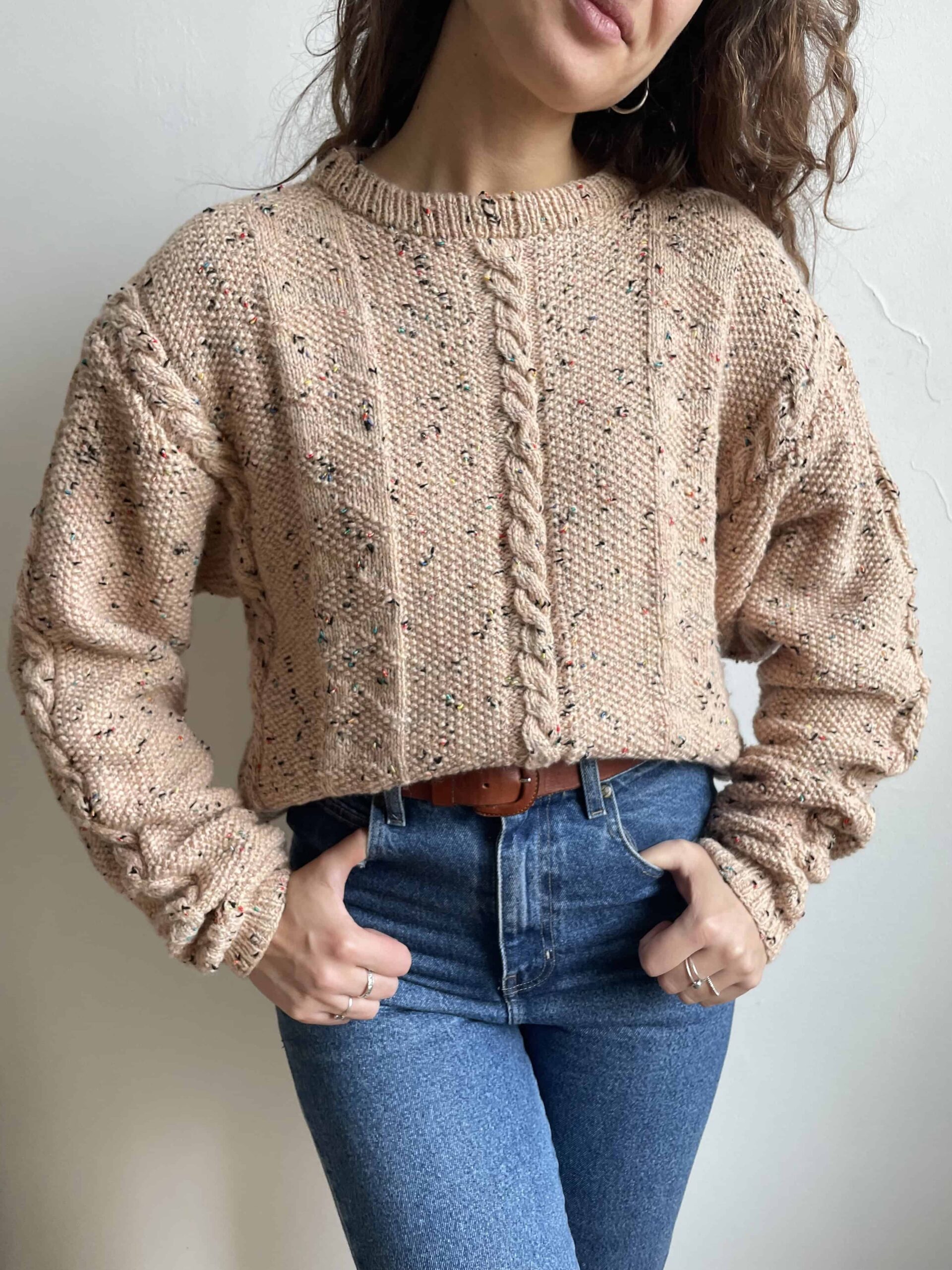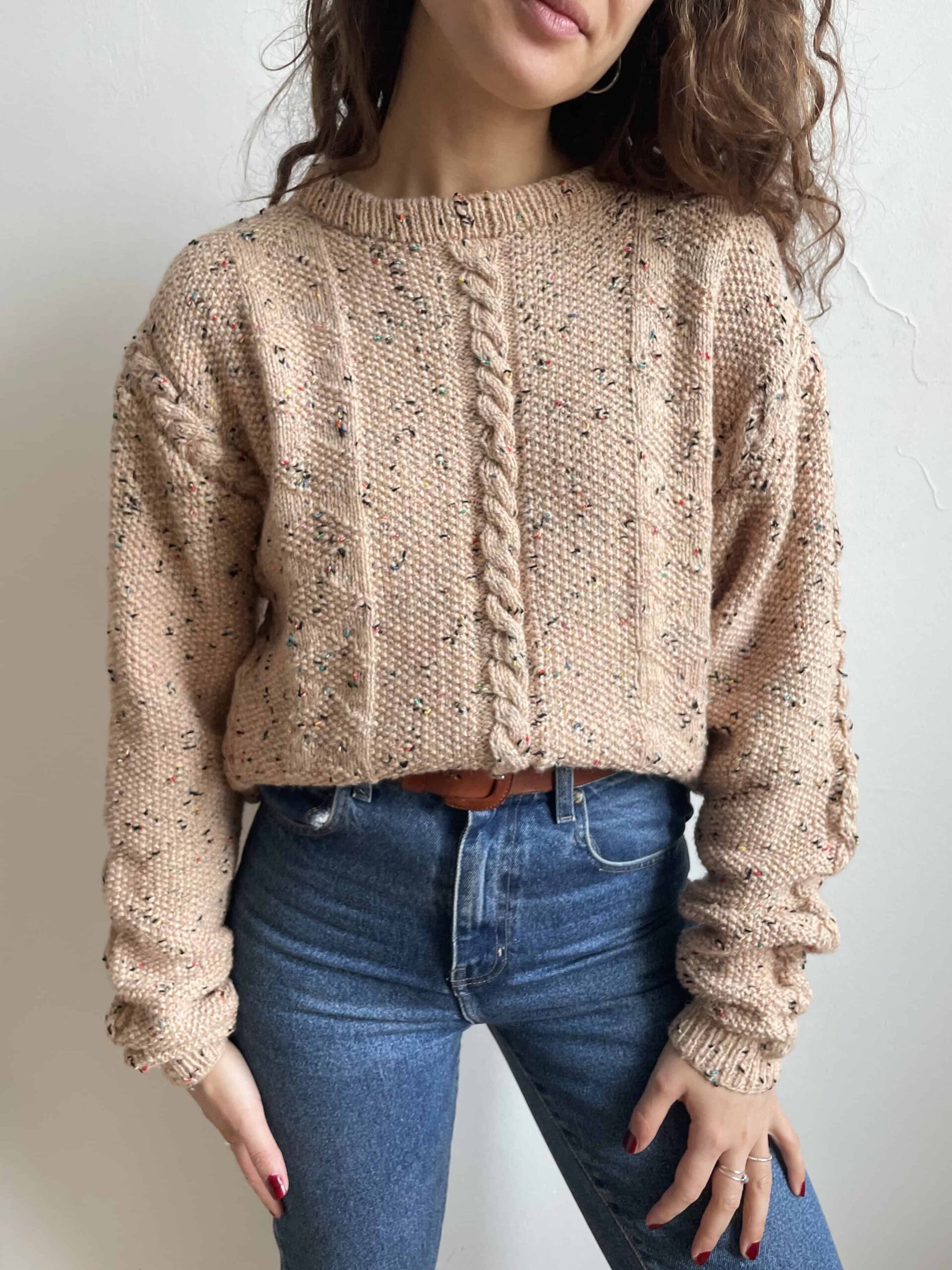 Maglione vintage fatto a mano misto lana melange beige a trecce