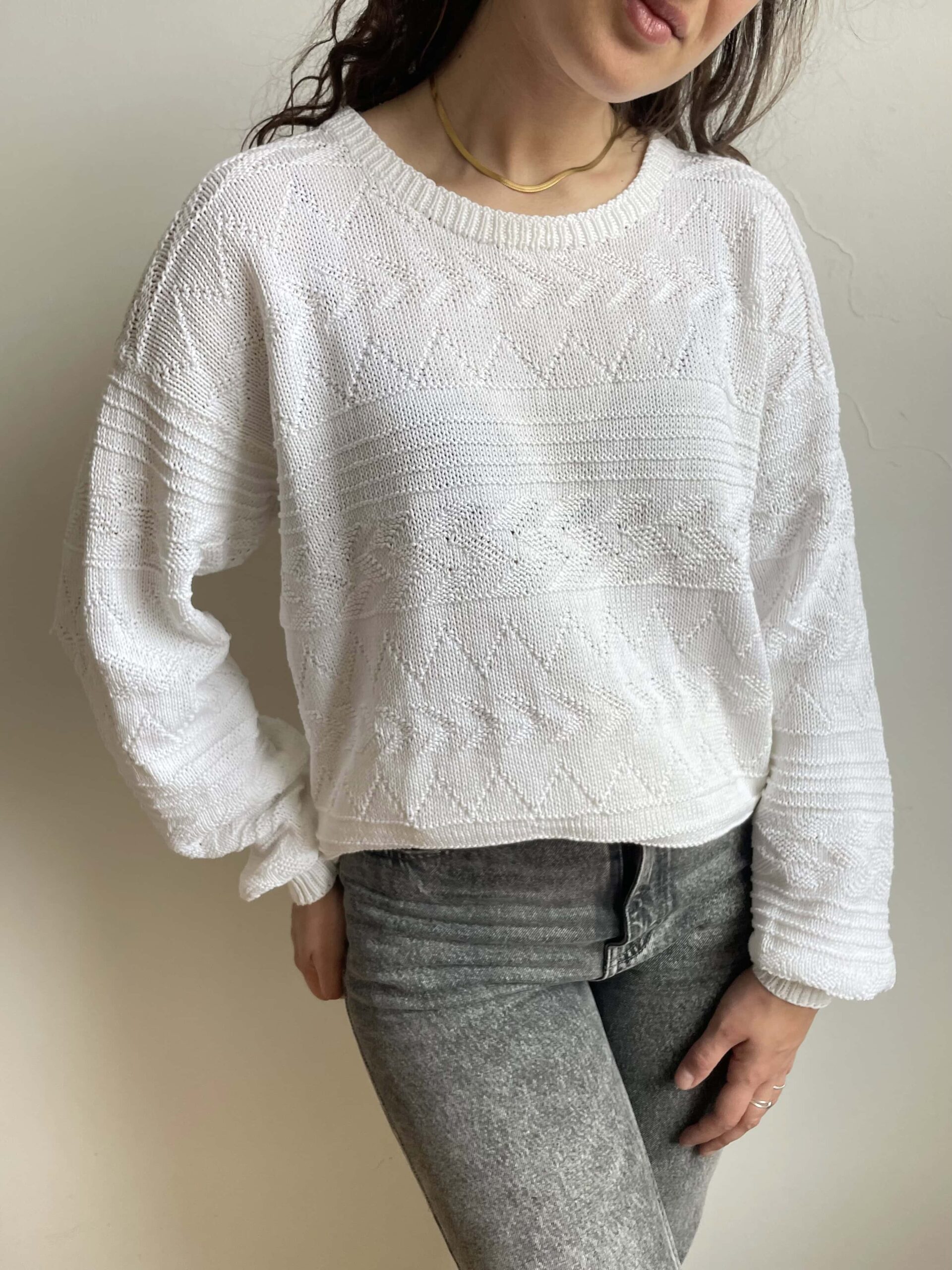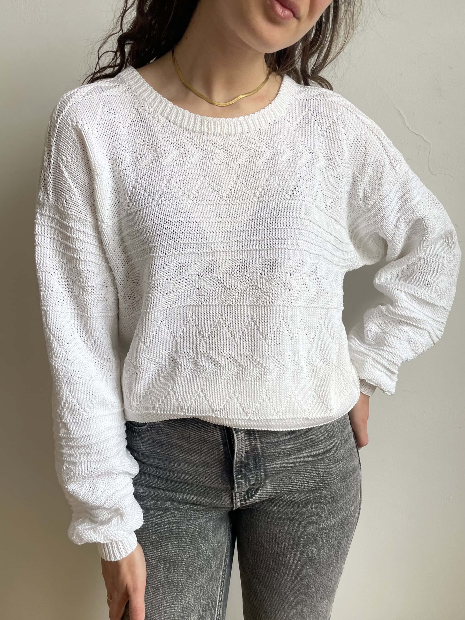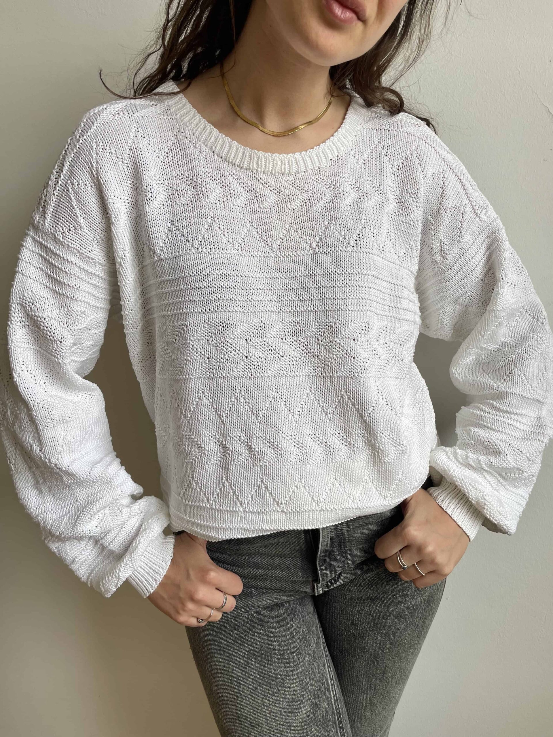 Maglione vintage in 100% traforato bianco oversize