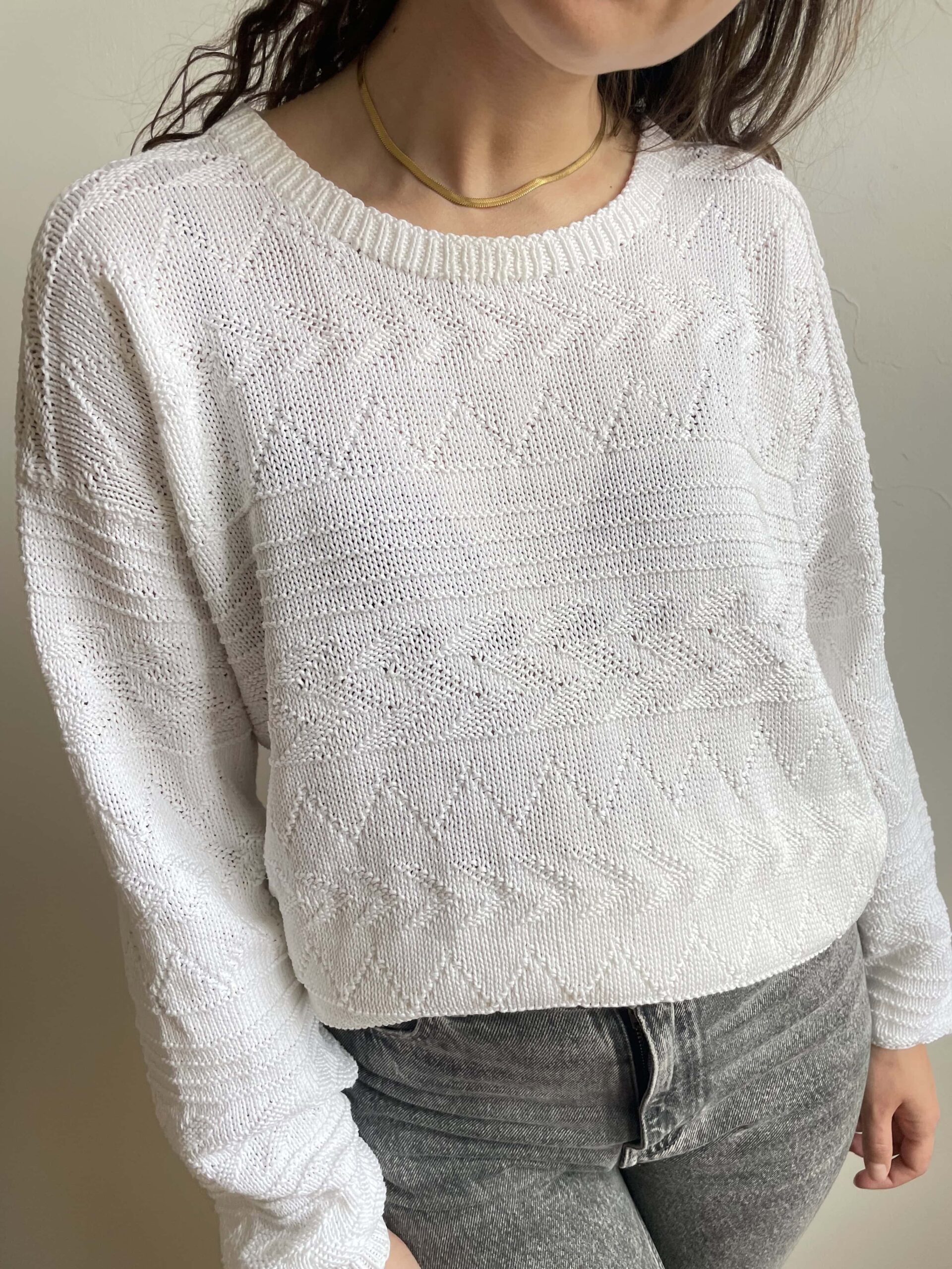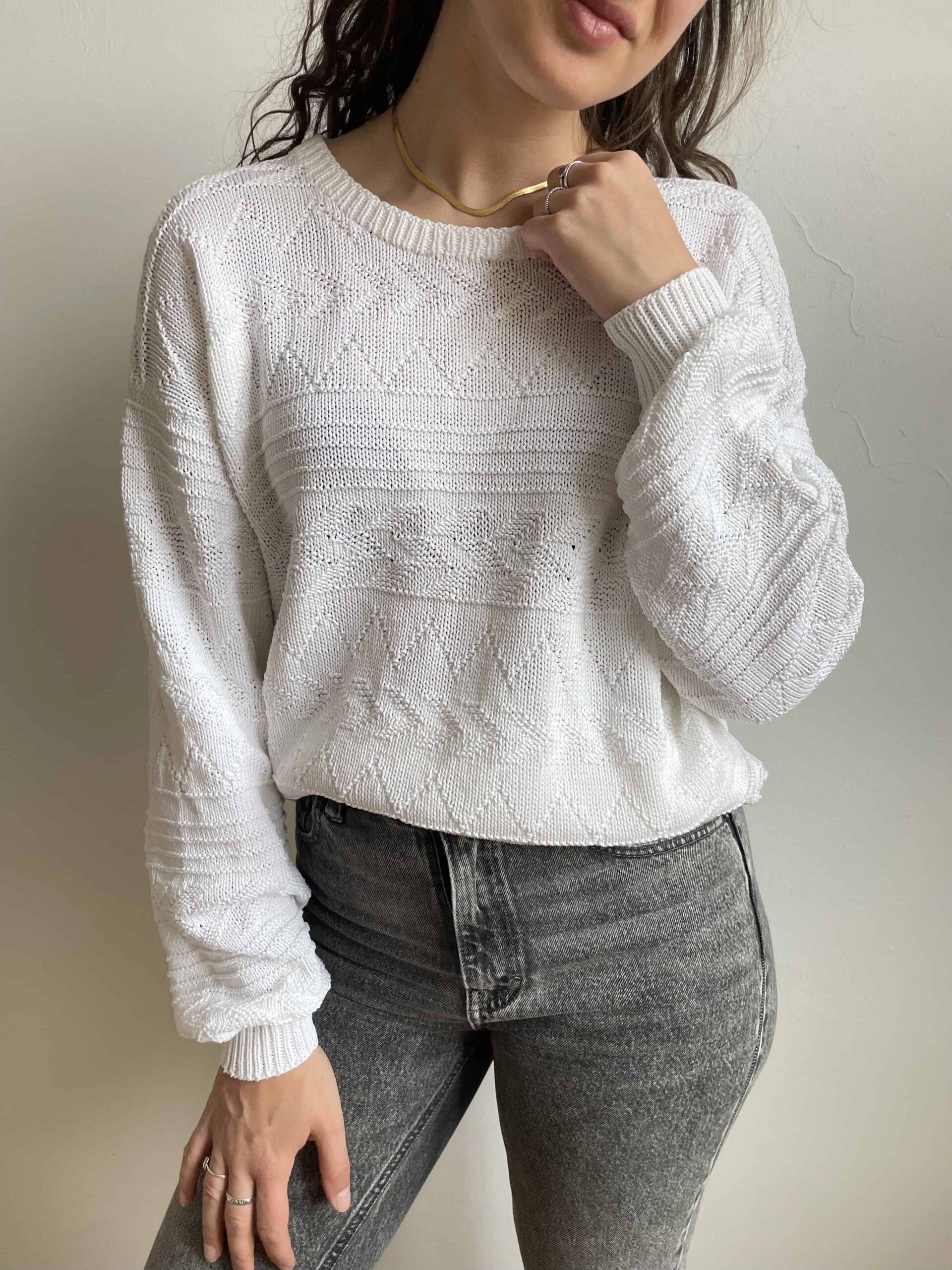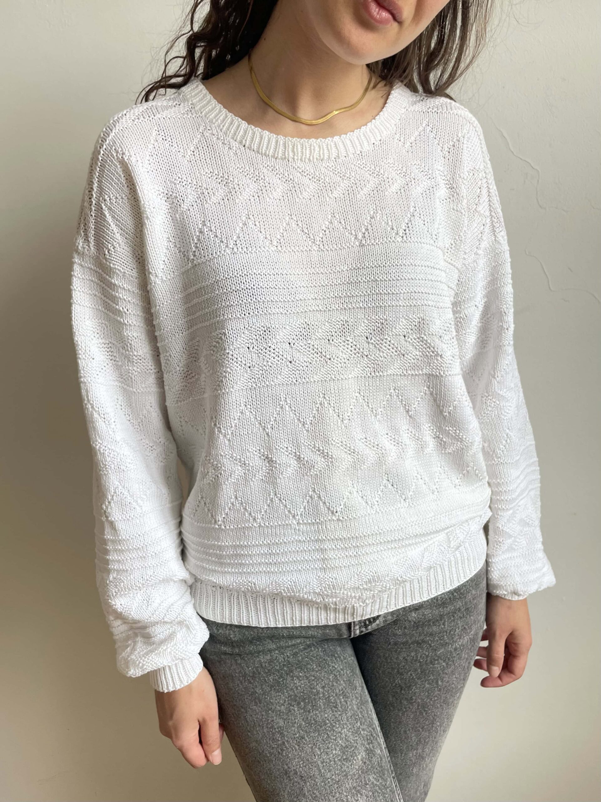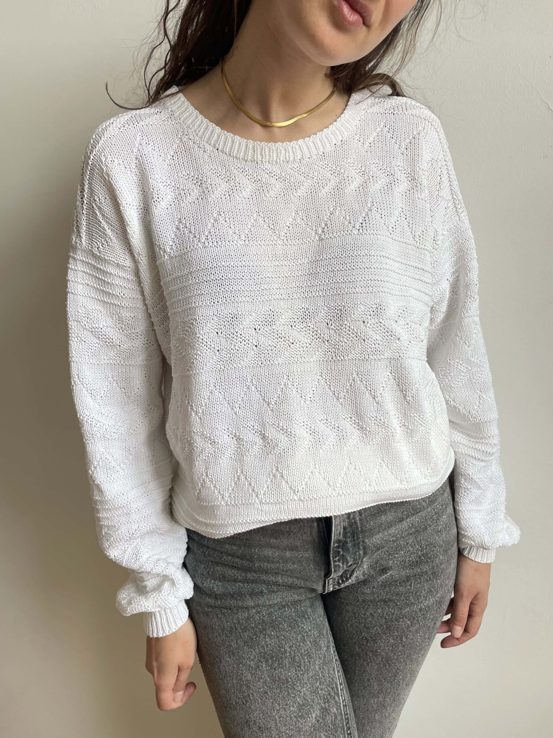 Maglione vintage in 100% traforato bianco oversize