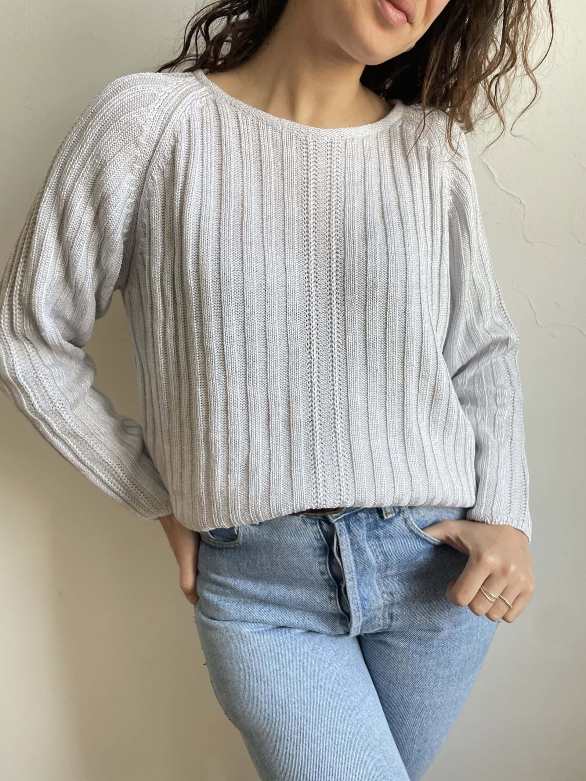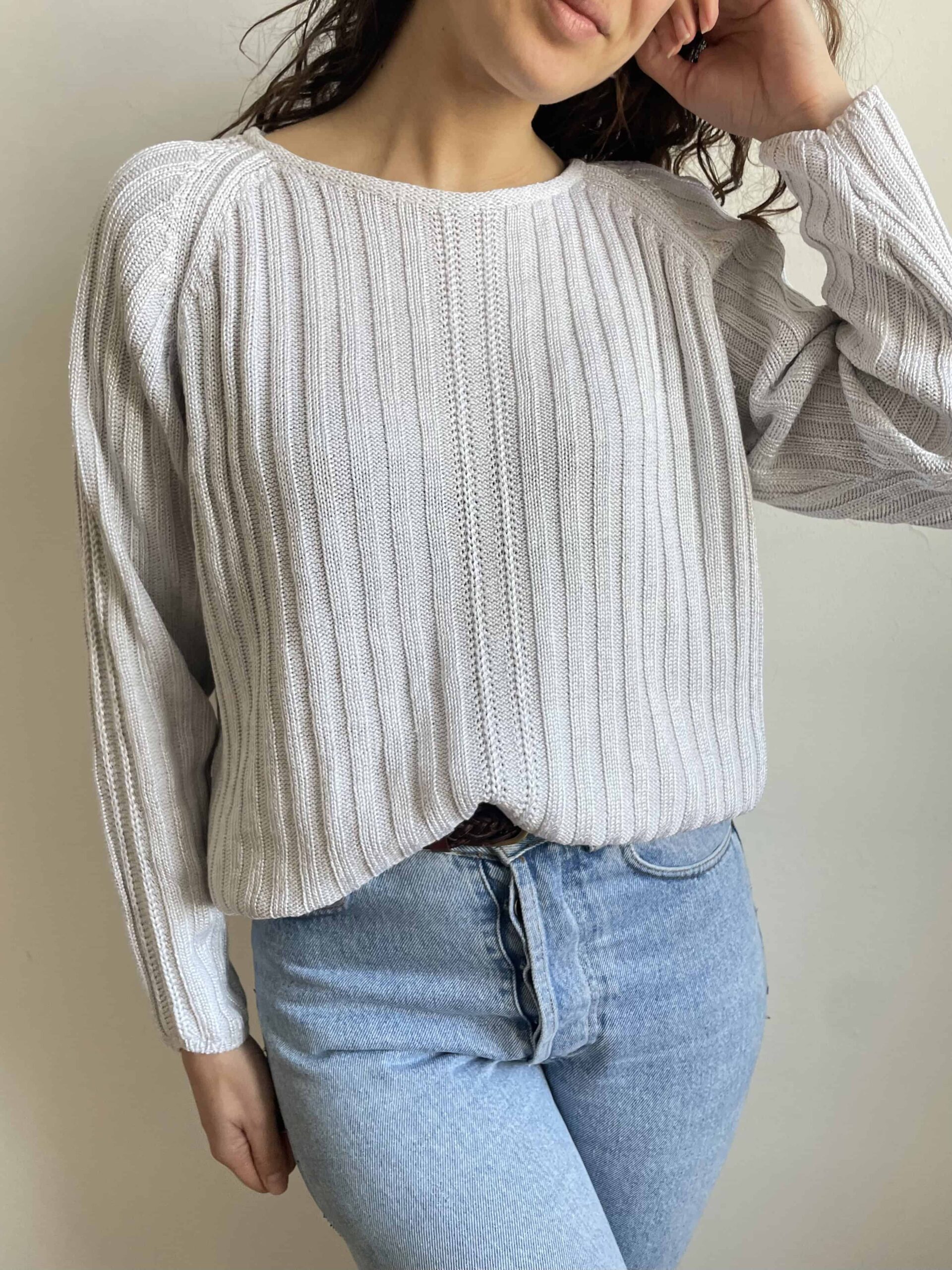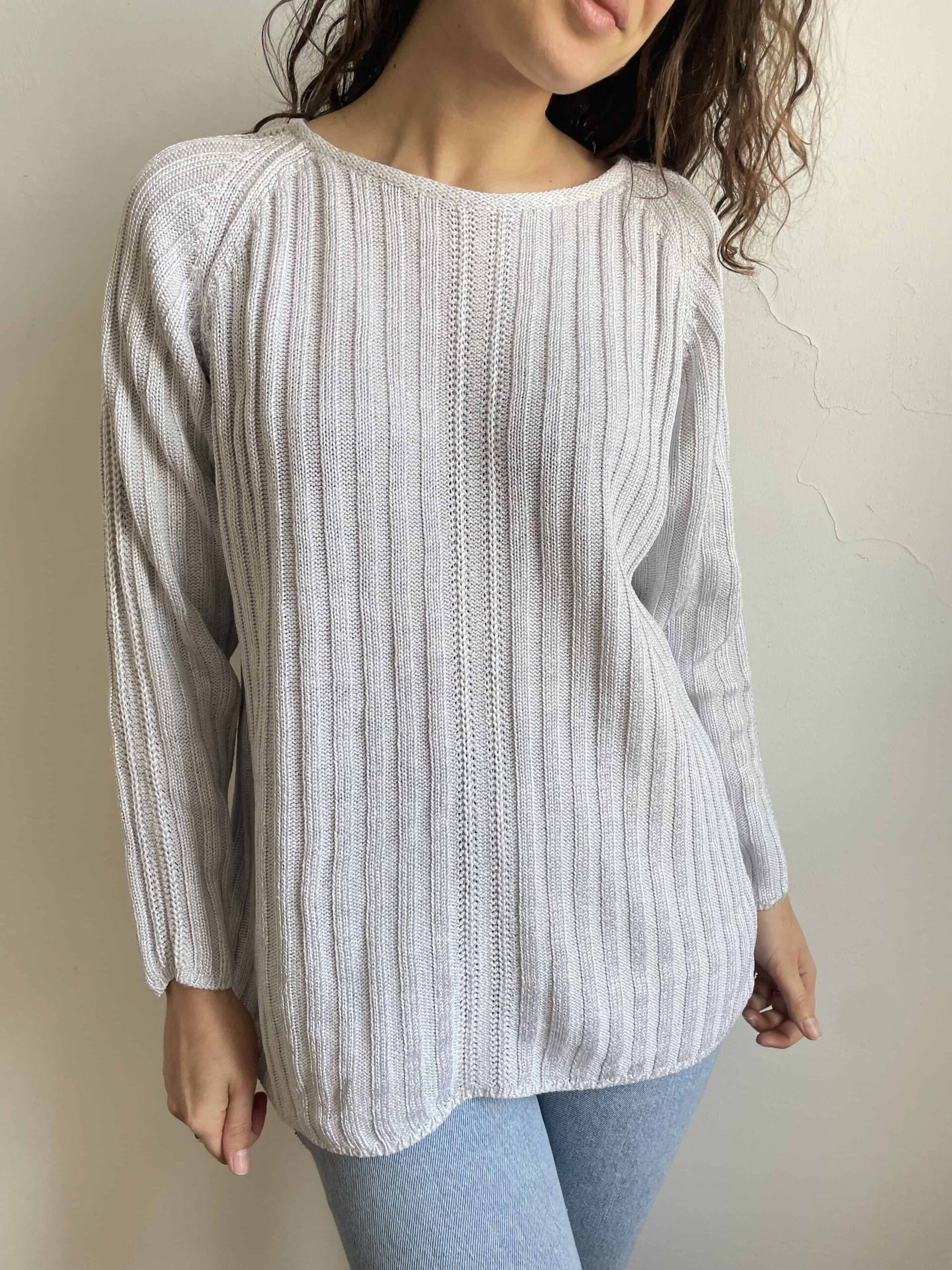 Maglione vintage in misto cotone viscosa e pregiata ramia ghiaccio