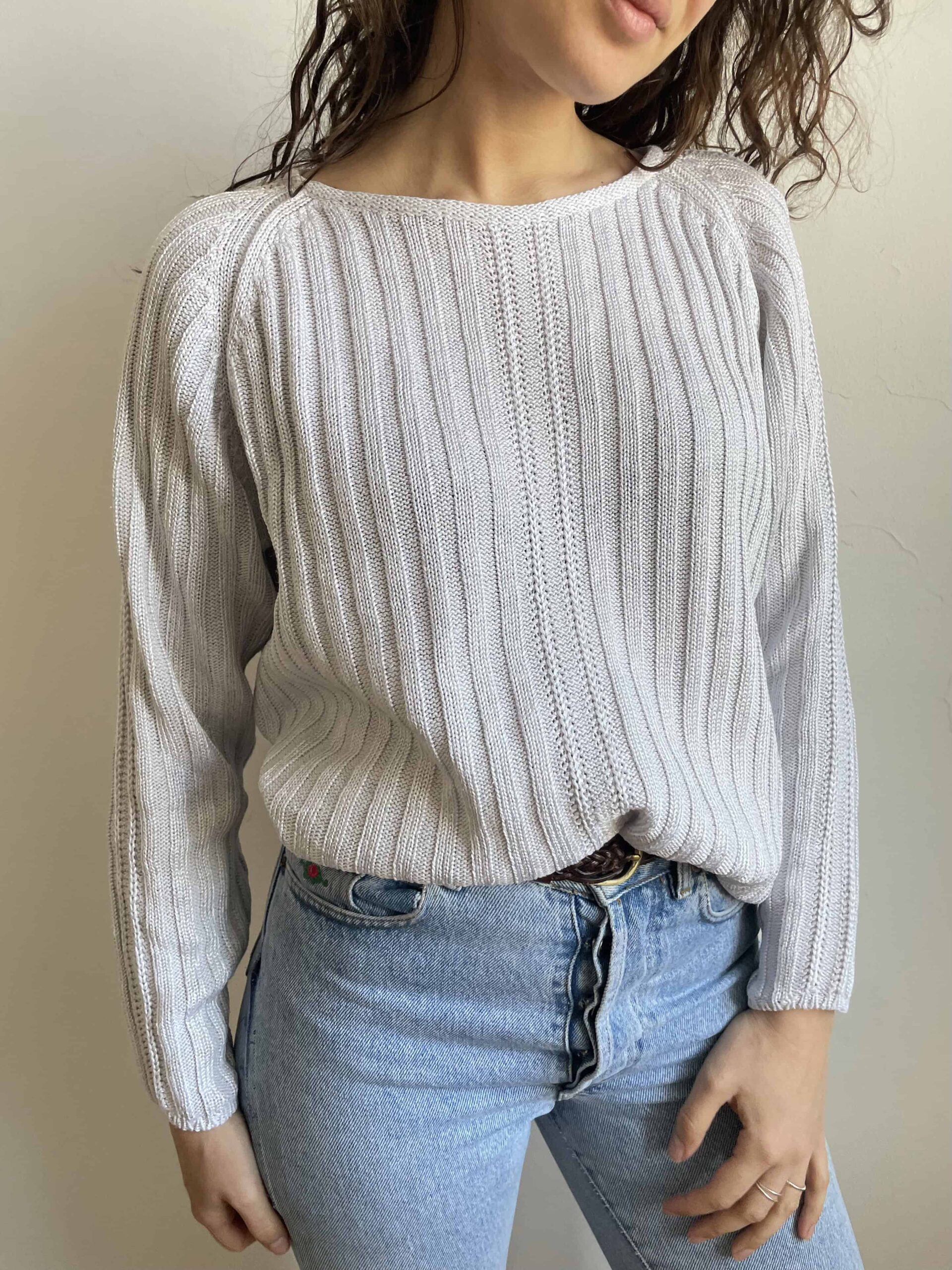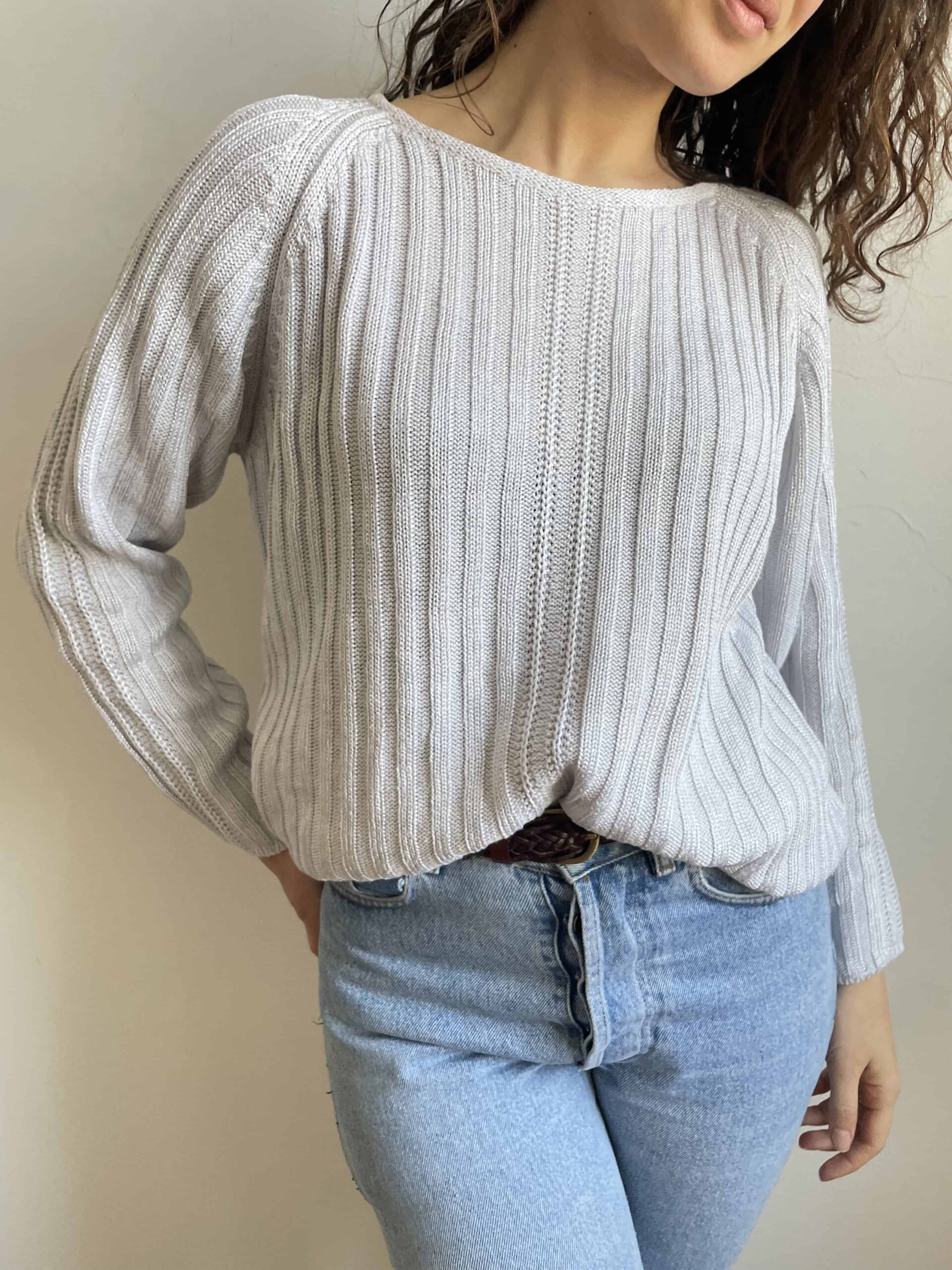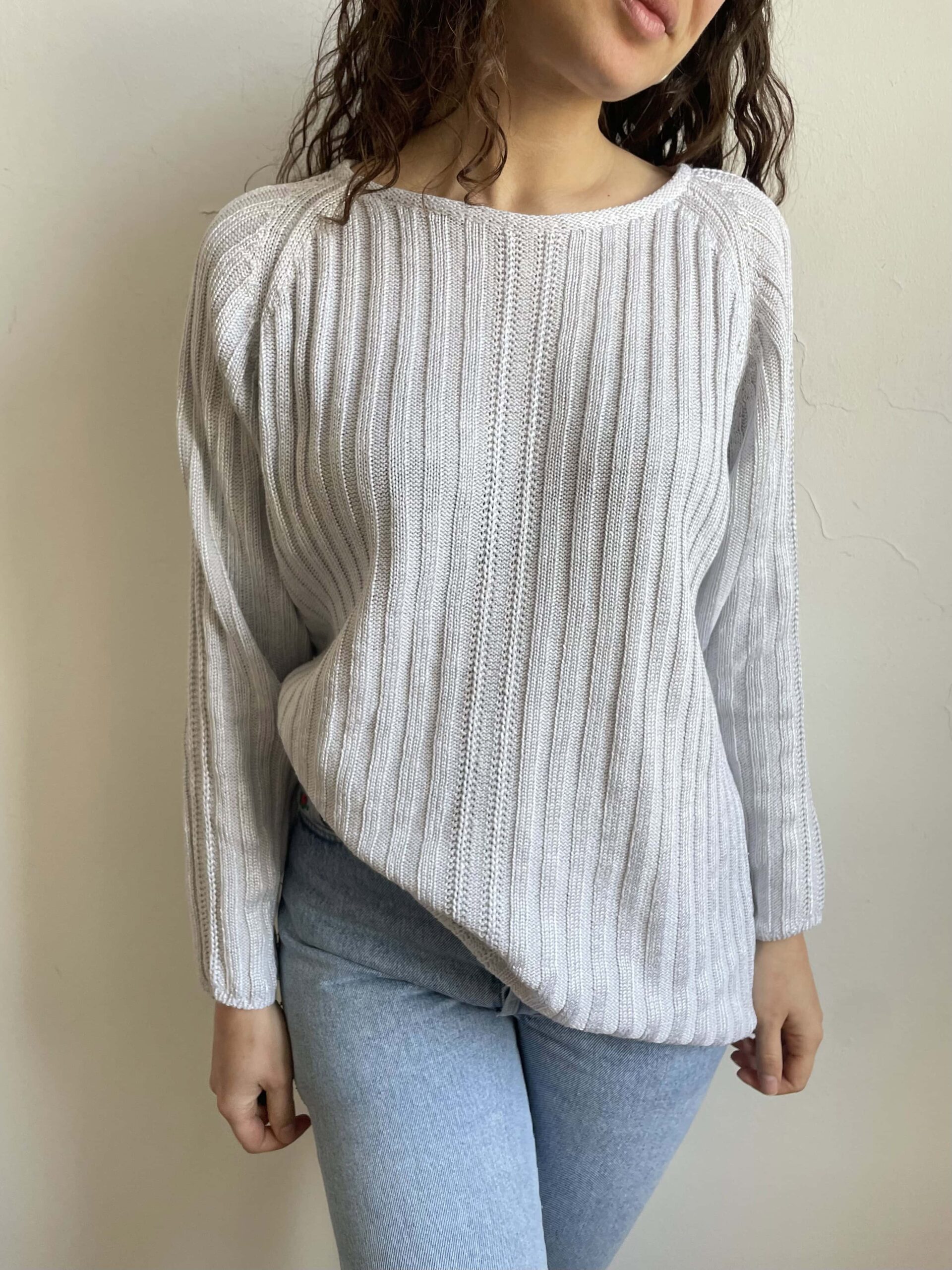 Maglione vintage in misto cotone viscosa e pregiata ramia ghiaccio