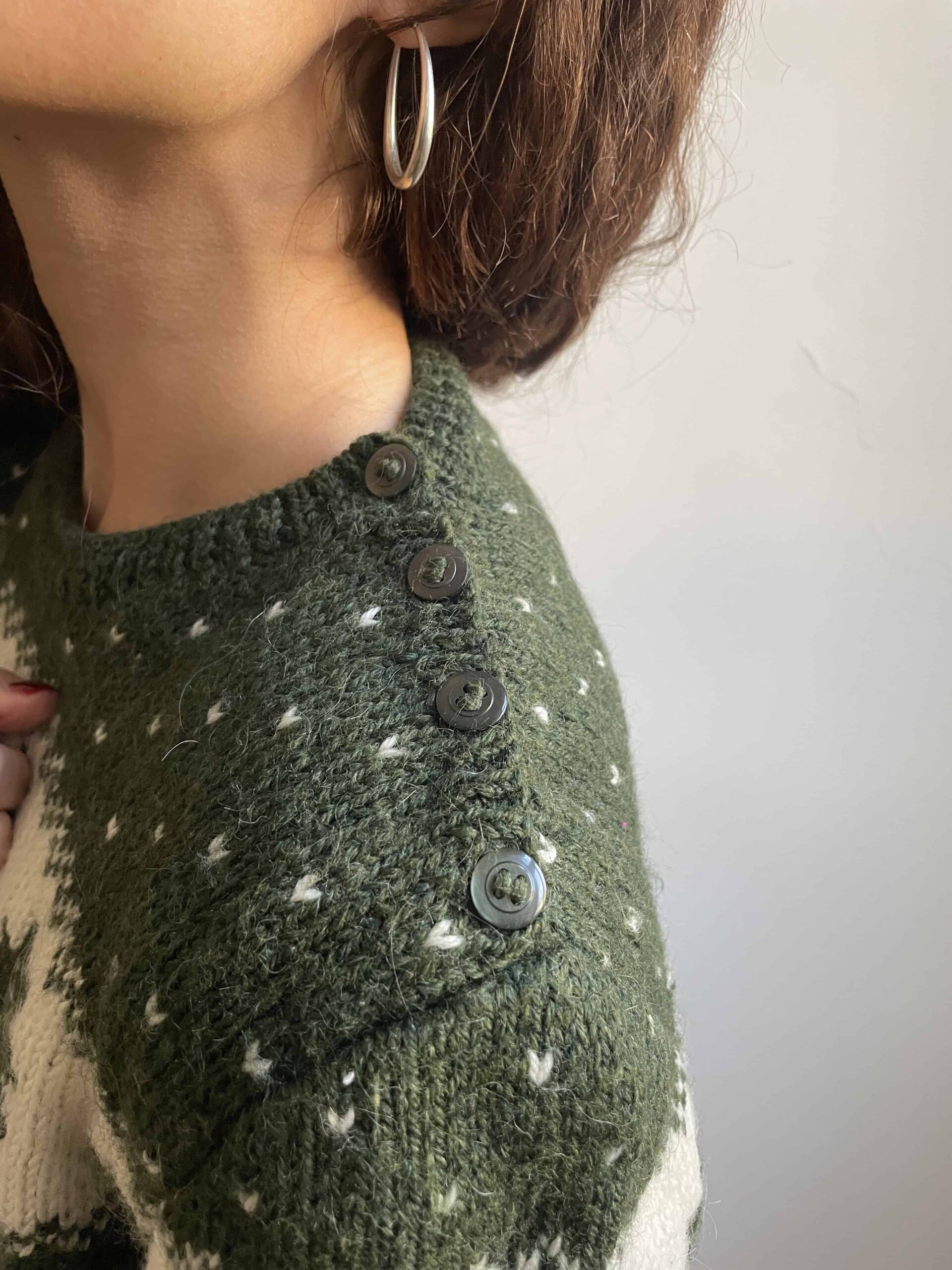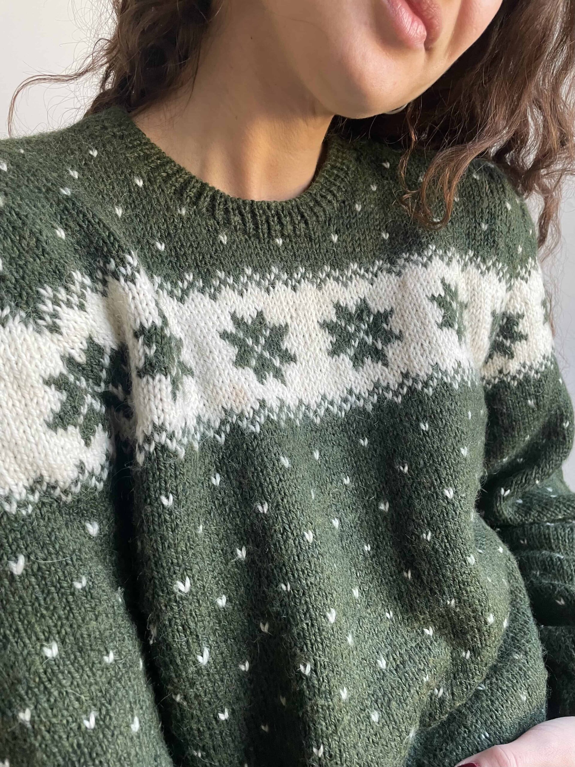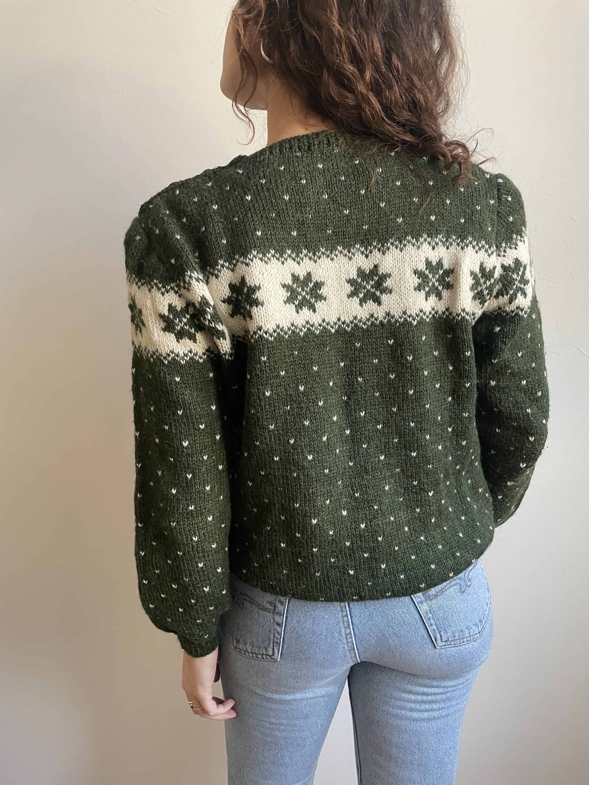 Maglione vintage nordico fatto a mano 100% lana verde e bianco